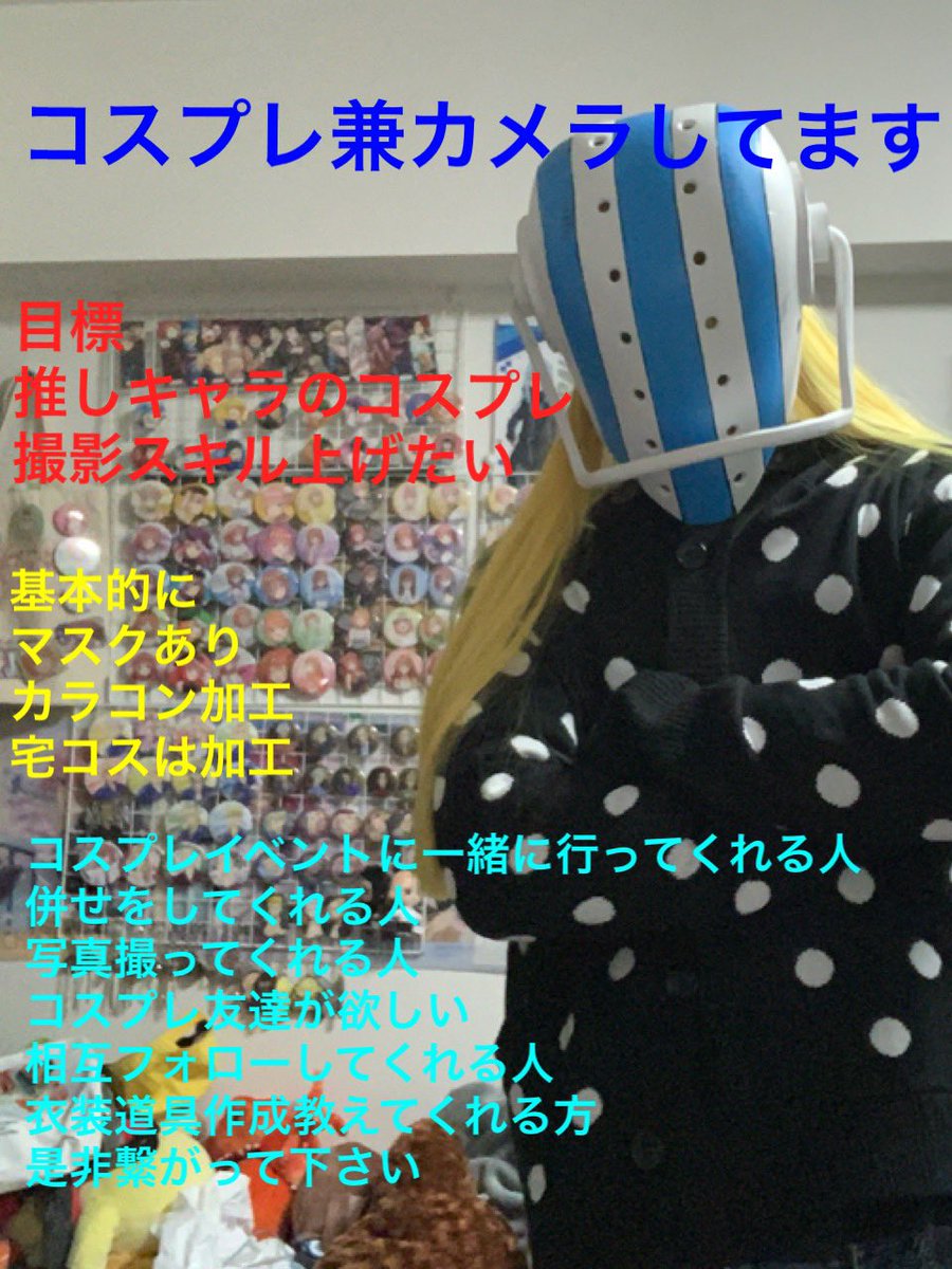 コスプレ兼カメラしてます📷 主にSAO、東リベ、ワンピースがメイン初心者でソロですがイベント同行してほしい😭 気になったレイヤーさんの撮影もします👍 #コスプレイヤーさんと繋がりたい #初心者レイヤーさんと繋がりたい #カメラマンさんと繋がりたい #併せしたい #コスプレ友達欲しい #宅コス