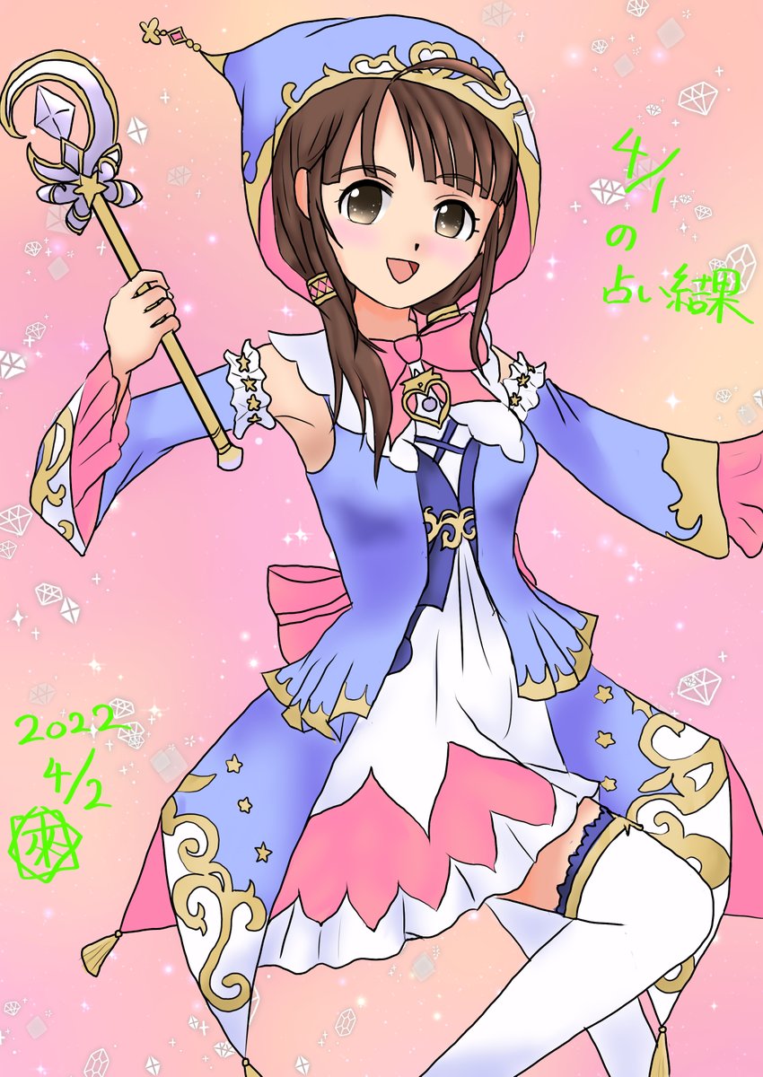 #デレステ #服部瞳子 #マジカルルミトーコ #來希のアイドル占い結果イラスト 今日は瞳子さん。衣装はやっぱりマジカルルミトーコの衣装で!スカートはあまりうまく出来なかった(ブラシ頼り)ステッキを使わず戦う感じをイメージした。
