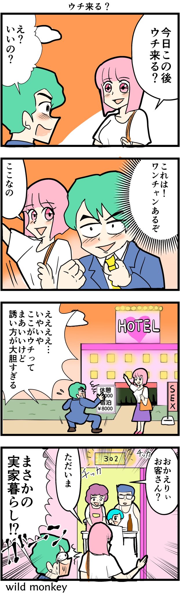 「このホテルみんなで4コマに使って 例のホテルにしましょう」とか ふざけてたら、本当にみんなが 使い出して描かなきゃモグリの雰囲気 出てきたし描いたよ!みんなも描こう 【4コマ漫画】ウチ来る? #4コマ #4コマ漫画 #漫画 #マンガ #漫画が読めるハッシュタグ #創作漫画 #例のホテル twitter.com/tunatu727/stat…