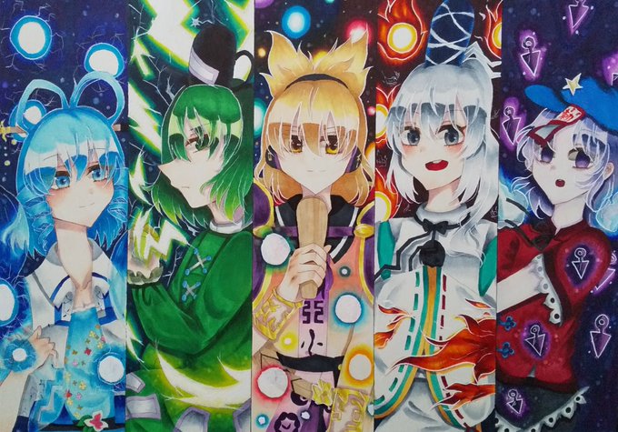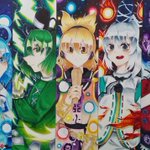 #東方Project #コピック #例大祭キッズイラストコンクール #博麗神社例大祭 博麗神社例大祭キッズイラストコンクール中学生の部にて最優秀賞を頂きました。とても嬉しいです。あまり写真だと金箔などが分かりにくいので、当日ぜひ原画を見て頂きたいです。