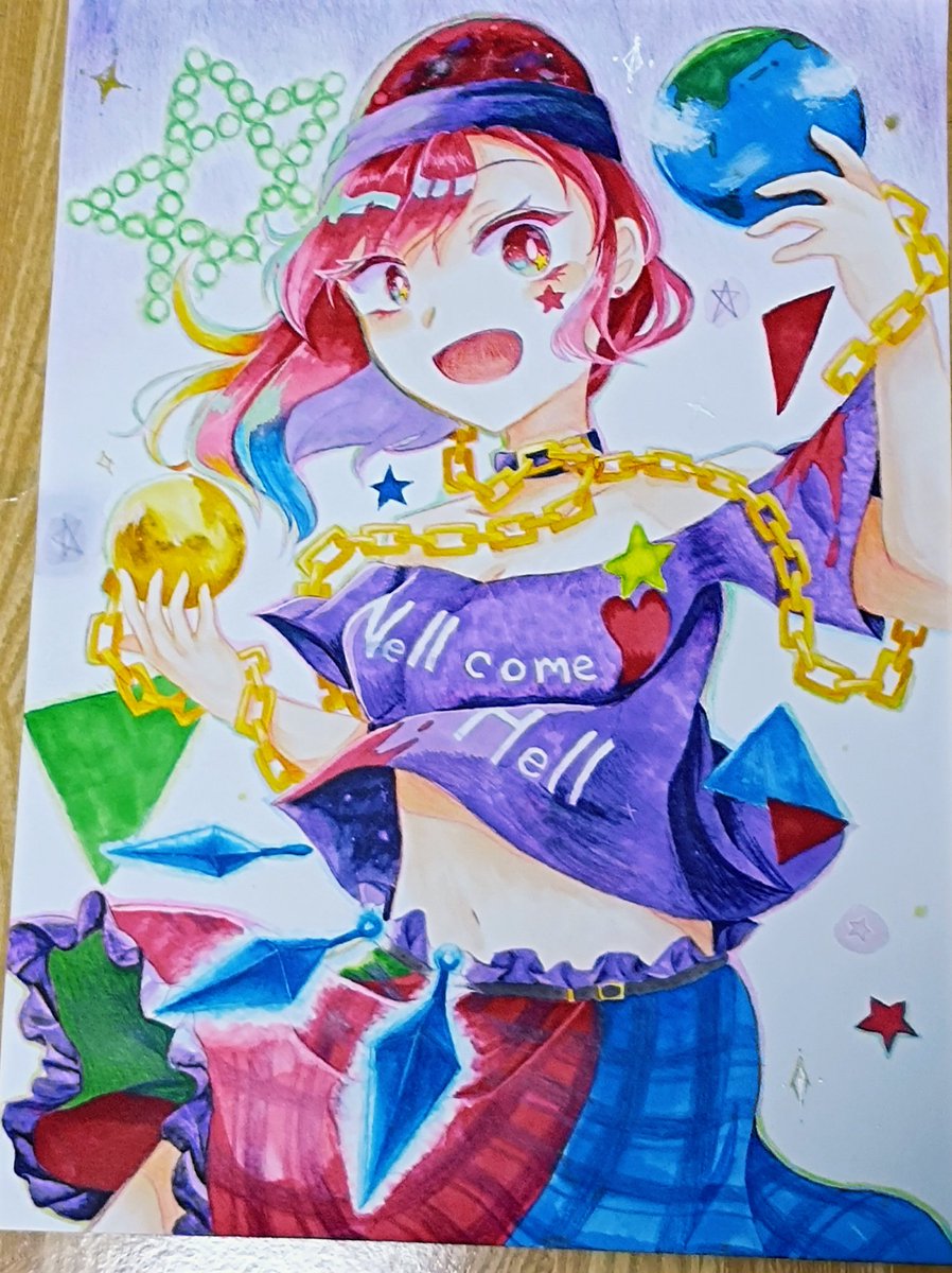 #例大祭キッズイラストコンクール #博麗神社例大祭 今思えばなんでこんなのでいけると思ってたのかわからないし反省点が多すぎる。でもめっっっちゃがんばったのは事実だし最後はアナログ&推しで勝負したかったという執念があったの!!!!