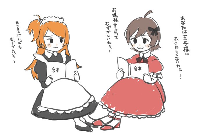 台本読みするひなたまらくがき お二人は演技経験いっぱいあるけど慣れない口調に最初は苦戦してそう 環もひなたも素敵なタグですね!お借りします #侍女環は令嬢のこぶん #ピュア令嬢ひなた略してピなた