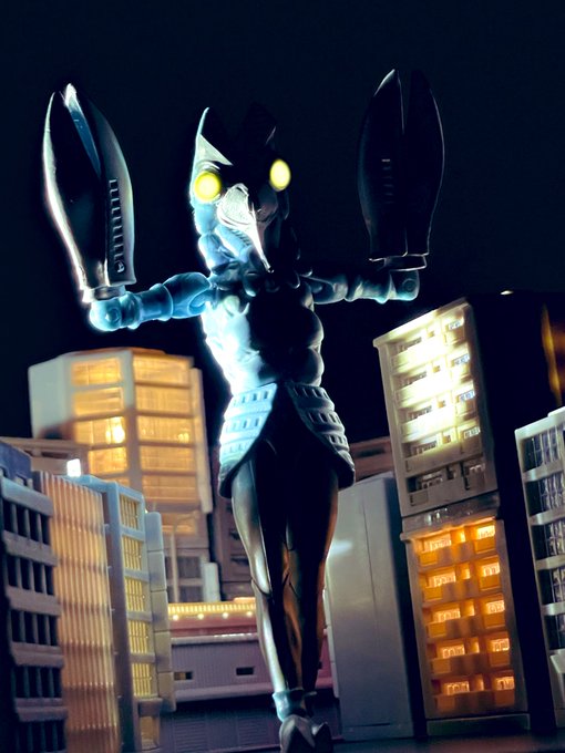 #夜のフィギュア撮影会 #バルタン星人 #侵略者を撃て #shodo 昨日投稿したバルタンとはまた違った構図(?)で撮った写真です!| ε:)_ドゾ! twitter.com/gsp6NvEY9BTZ…