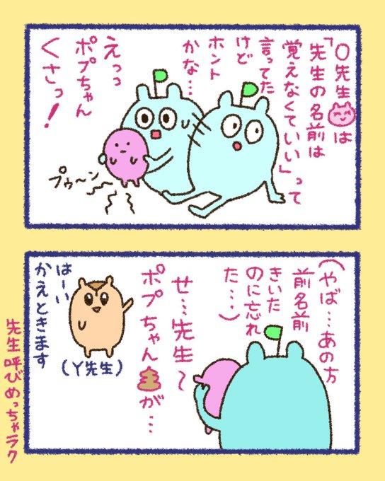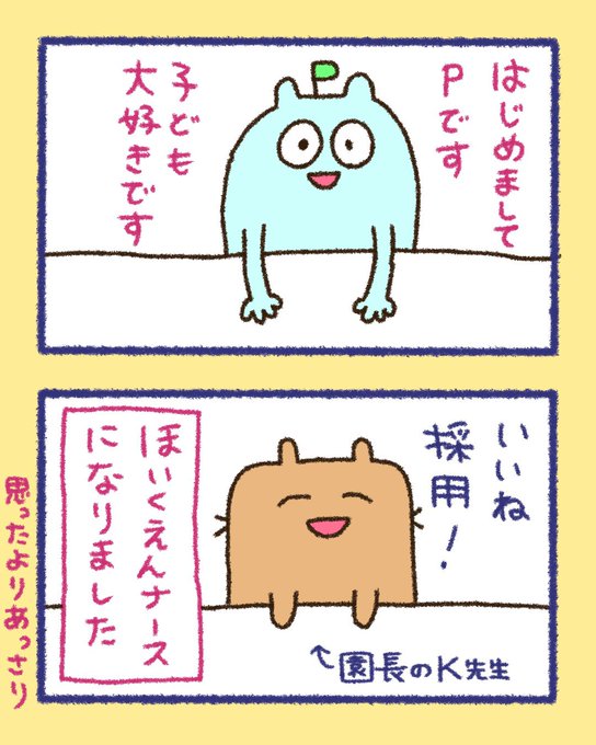 【#保育園ナースになりました EP.8】 先生の名前は後回しでいいからこどもの名前は最優先で覚えないといけないみたいです…あわわ… #15分漫画チャレンジ #漫画が読めるハッシュタグ #絵日記 #保育園看護師 #OCイラ #ゆるキャラ #育児漫画