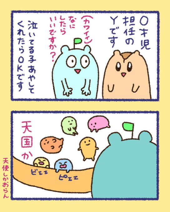 【#保育園ナースになりました EP.3】 天使がたくさんおる… もうここ天国じゃん…! って思うくらい赤ちゃんはカワイイ🥰 (本編のエッセイ漫画がなかなか更新できないけど明日こそは…😇) #10分漫画チャレンジ #漫画が読めるハッシュタグ #絵日記 #保育園看護師 #2コマ漫画