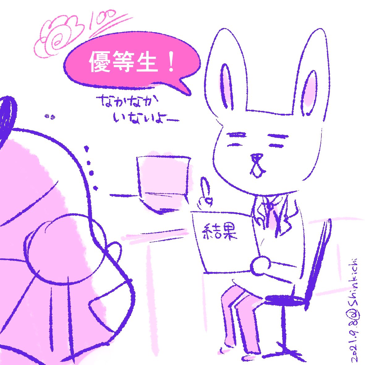 ワクチン1回目日記です 子なし独身者は投票とワクチンくらいしか学校内入る機会ないので貴重です。令和のTOKYOの学校はおしゃれすぎる…足立区よ… そして1回目で微熱出てるw #信吉絵 #信吉どん #illustration