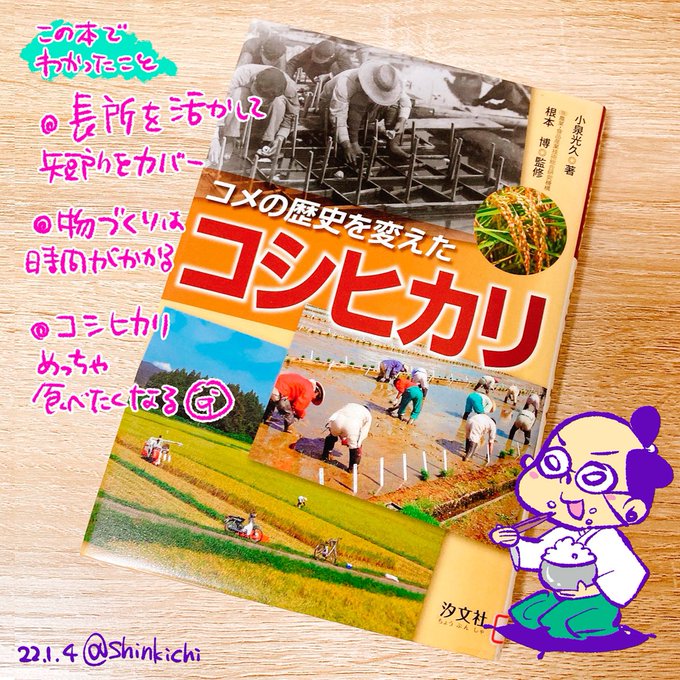 🍚コシヒカリの本、図書館の子供向けコーナーで目に留まって本借りた!これも出会い… 子供向け本は分かりやすいし丁寧だし読みやすい…!お米作るのすごい時間かかるんだな…🤔 読んでてずっとコメ食べたくなってた🤤(早速ポチった🌾) #信吉絵 #信吉どん #illustration