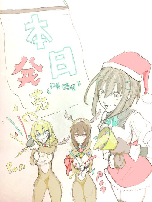 本日発売!!! 「俺は星間国家の悪徳領主! 6巻」 「あたしは星間国家の英雄騎士! 1巻」 主君の嫁と主君のお気に入りがトナカイコスで 自分(エマちゃん)はサンタコスの上 メインで音頭をとる命令を受け 見事失敗した配下の図 #俺は星間国家の悪徳領主! #ファンアート #イラスト
