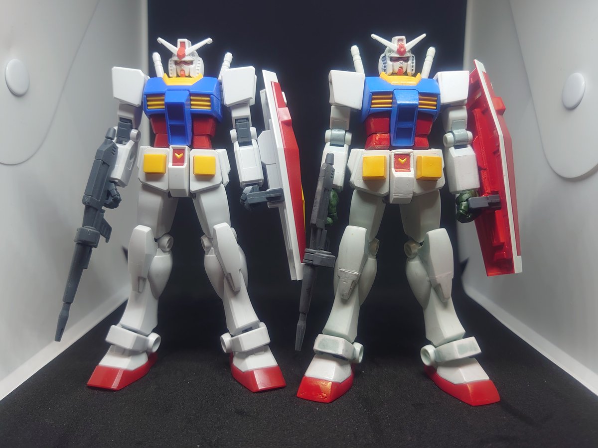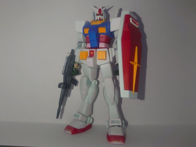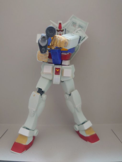 左右の持ち手をエポパテから作り、前後のアーマーの形状変更をしました。 ライフルのグリップを可動するようにしたのでポーズのチェック。 いい感じ。 #俺ガンフェスティバル #ガンプラ #ガンプラ好きと繋がりたい #ガンプラの画像貼るとRTされると聞いて #EGガンダム