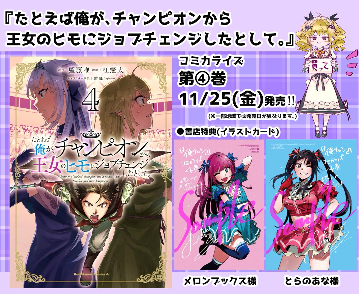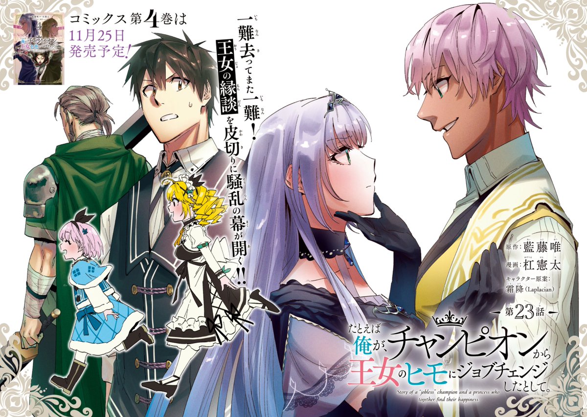 『たとえば俺が、チャンピオンから王女のヒモにジョブチェンジしたとして。』 コミカライズ④巻発売です⚔📕 メイド救出の大立ち回り、その結末は…!? #俺チャン amzn.to/3DQZUVM