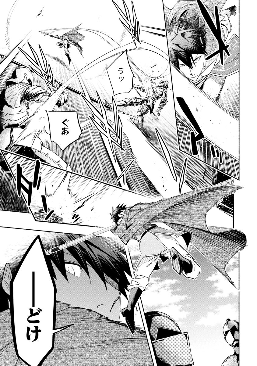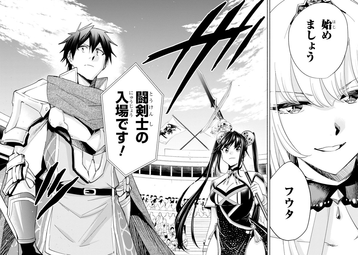 『俺チャン』コミカライズ [第32話-1]更新されました⚔️✨️ ついに対峙するチャンピオンと伍之太刀―― 圧倒的な魔導の力がフウタ(とついでに蛮族たち)を襲う!! web-ace.jp/shonenaceplus/… #俺チャン