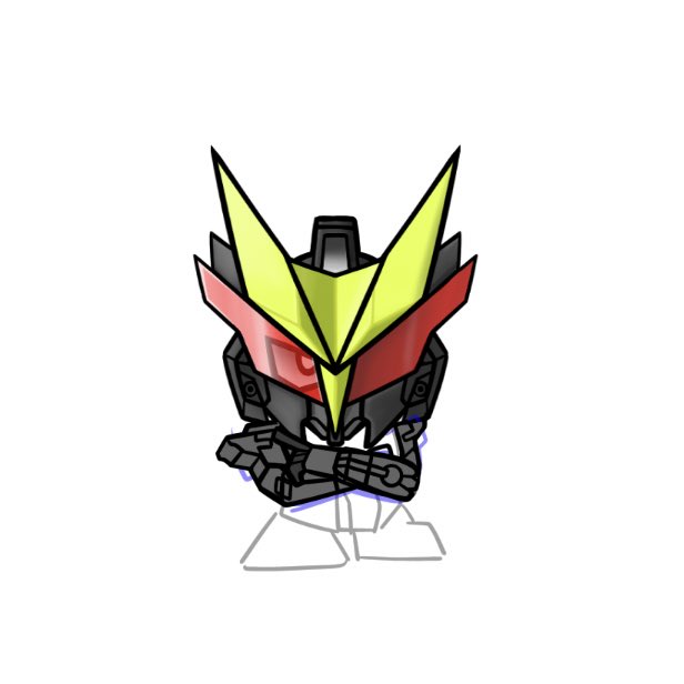 最初はバイザーの奥は赤を透過してに全て描くつもりでしたが試行錯誤の末 片目だけ描いて光と影を表現するのがヒロイックな見た目とポーズに1番似合うんじゃないかなと✌️ お気に入りの箇所です☺️ #俺プライラスト化計画 #SDガンダム #イラスト
