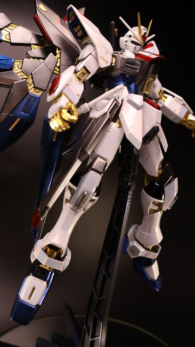 #俺達のアナザー #ガンプラ好きと繋がりたい #ガンプラの画像貼るとRTされると聞いて 2/3機目 MGストライクフリーダム 現状完成している最新作です 普段あまり使わないゴールドやシルバーのデカールを多用しています