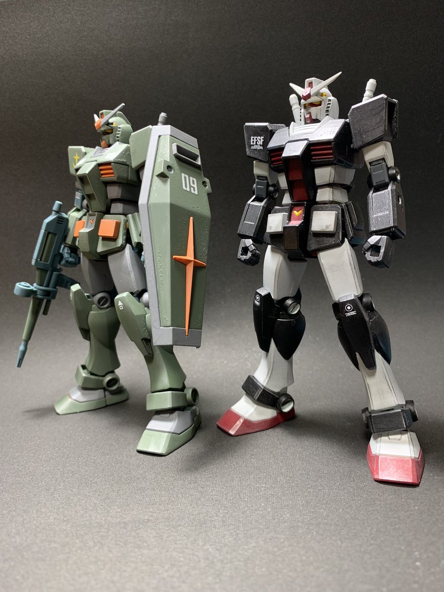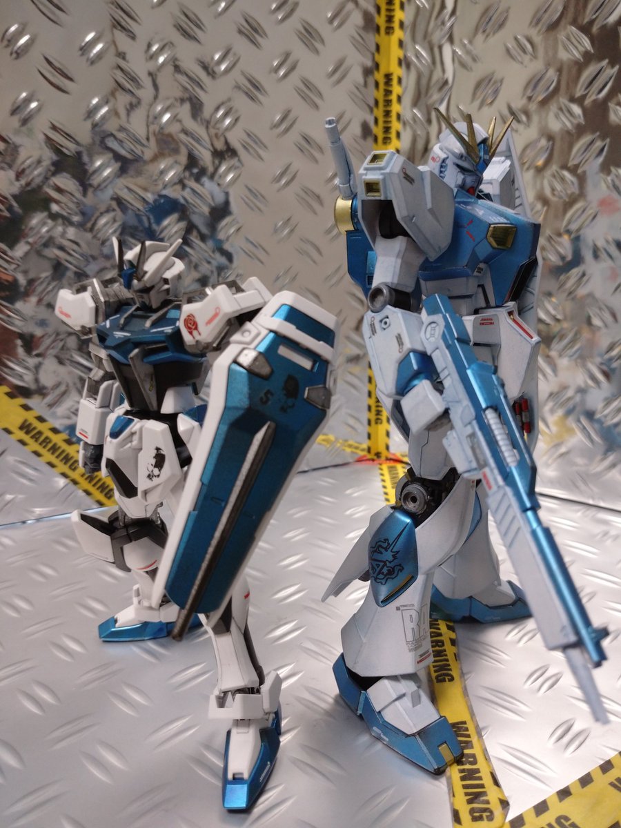 お疲れ様です♪ヽ(´▽`)/ #俺達のEGガンダム ストライクガンダムとvガンダムのツーショットです✨ストライクは、若干ブルーを変えてます😎皆さま素敵な午後を、お過ごしください😊🎵🎵 #俺達のEGガンダム #ガンプラ #ガンプラ好きな人と繋がりたい