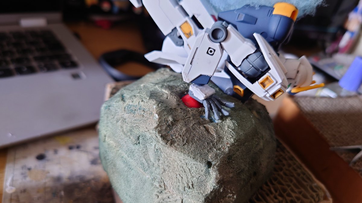 #俺達のEGガンダム フィンファンネルが付いてこなければ それにふさわしい作品を作ればいいじゃないか! 「EG νガンダムは伊達じゃない!!!」 アクシズを押し返すνガンダムを磁石にくっつくマグネットのヴィネットとして製作しました! ちゃんとサザビーのコクピットもあります(笑) #ガンプラ