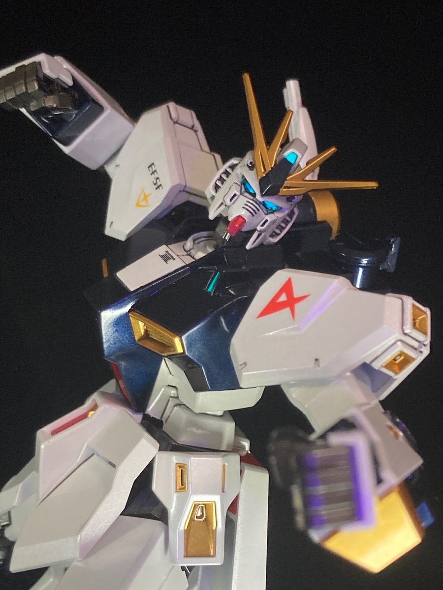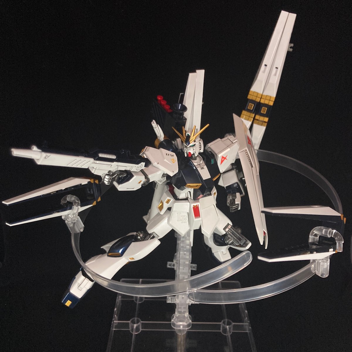 EGνガンダム完成しました! HGUCから各種武装を流用しつつ全塗装 #ハイキューパーツ さんのメタルパーツを使ってのディテールアップを行い おなじみ #ガンプラ凄技テクニック を参考に光沢仕上げです 以下レスで画像続きます #俺達のEGガンダム後夜祭 #俺達のEGガンダム #俺のν #ガンプラ #gunpla