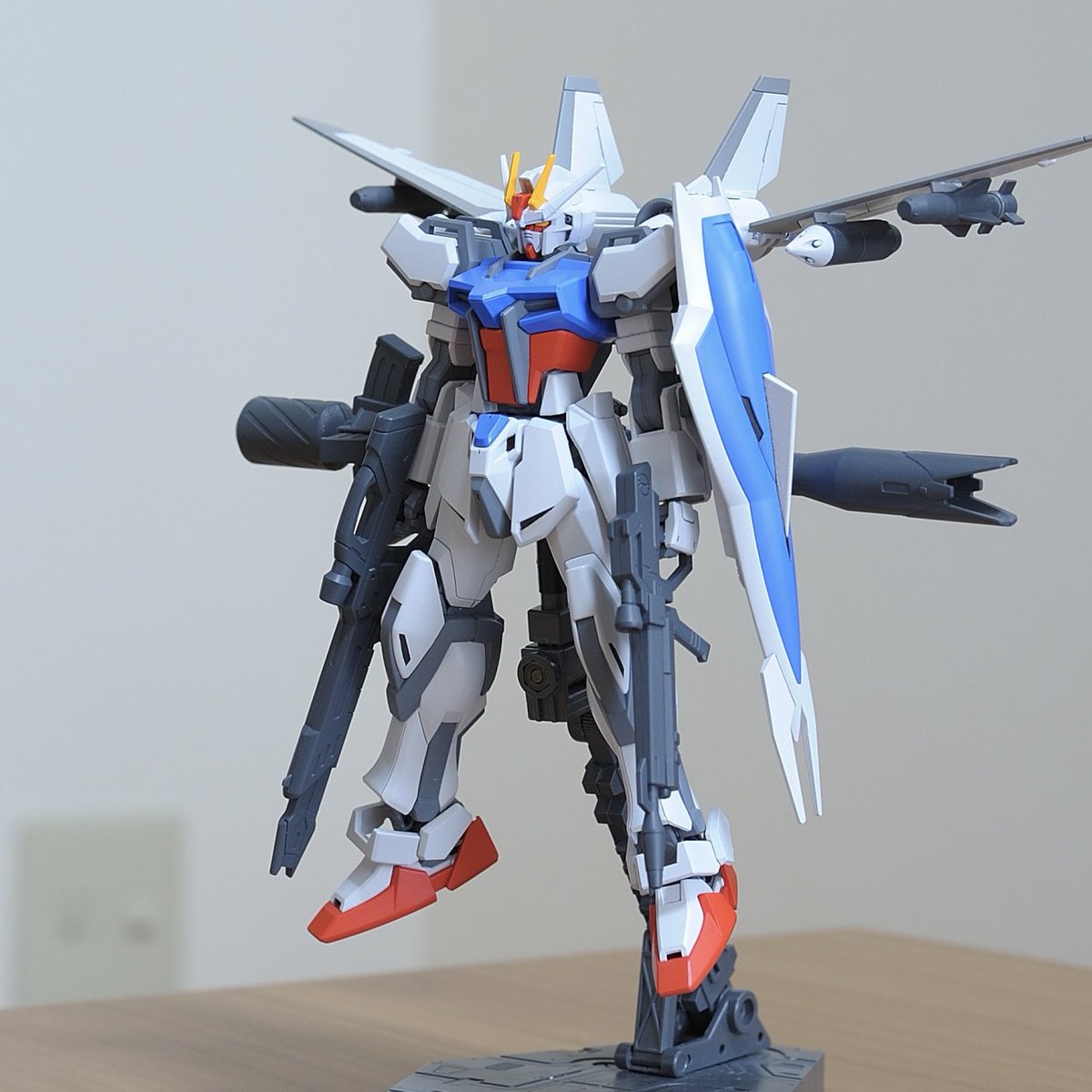 #俺達のEGガンダム後夜祭 一番くじのEGストライクを塗装して仕上げました😊武器、バックパックはウィンダム等から拝借😄写真には写って無いですが、バズーカ用のラッチ?はプラ板で自作しました‼️今回も楽しく作成できました😆 #ガンプラ好きと繋がりたい #ガンプラの画像を貼るとRTされると聞いて