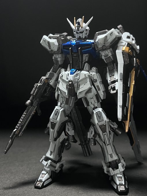ストライクアズール シラバト装備 ほぼ30mmのみでオオトリ装備を作りました 武装もオオトリ装備を基準にして 対艦刀のみ実体剣に変更してあります 後ろのシラバトストライカーは単体飛行可能 名前の由来は自分の誕生鳥です #俺達のEGガンダム後夜祭 #ガンプラ