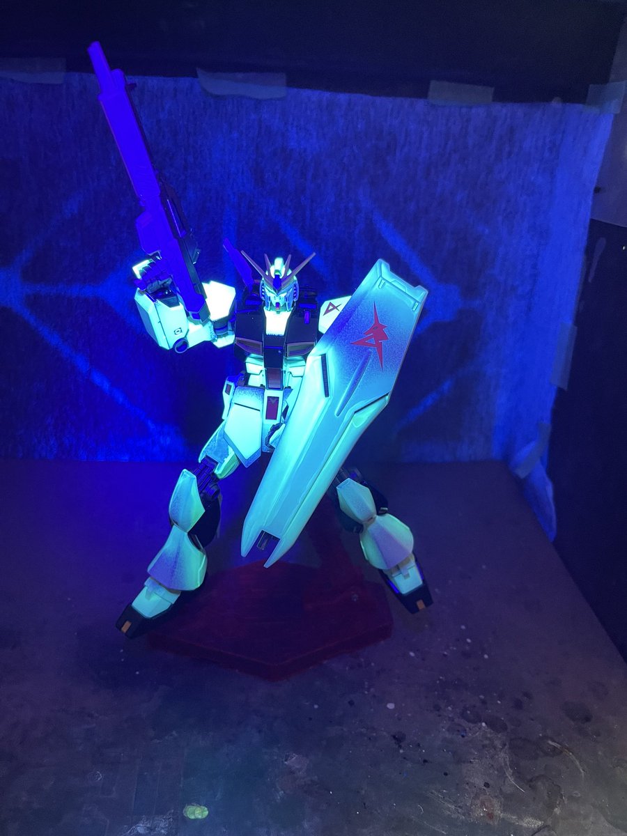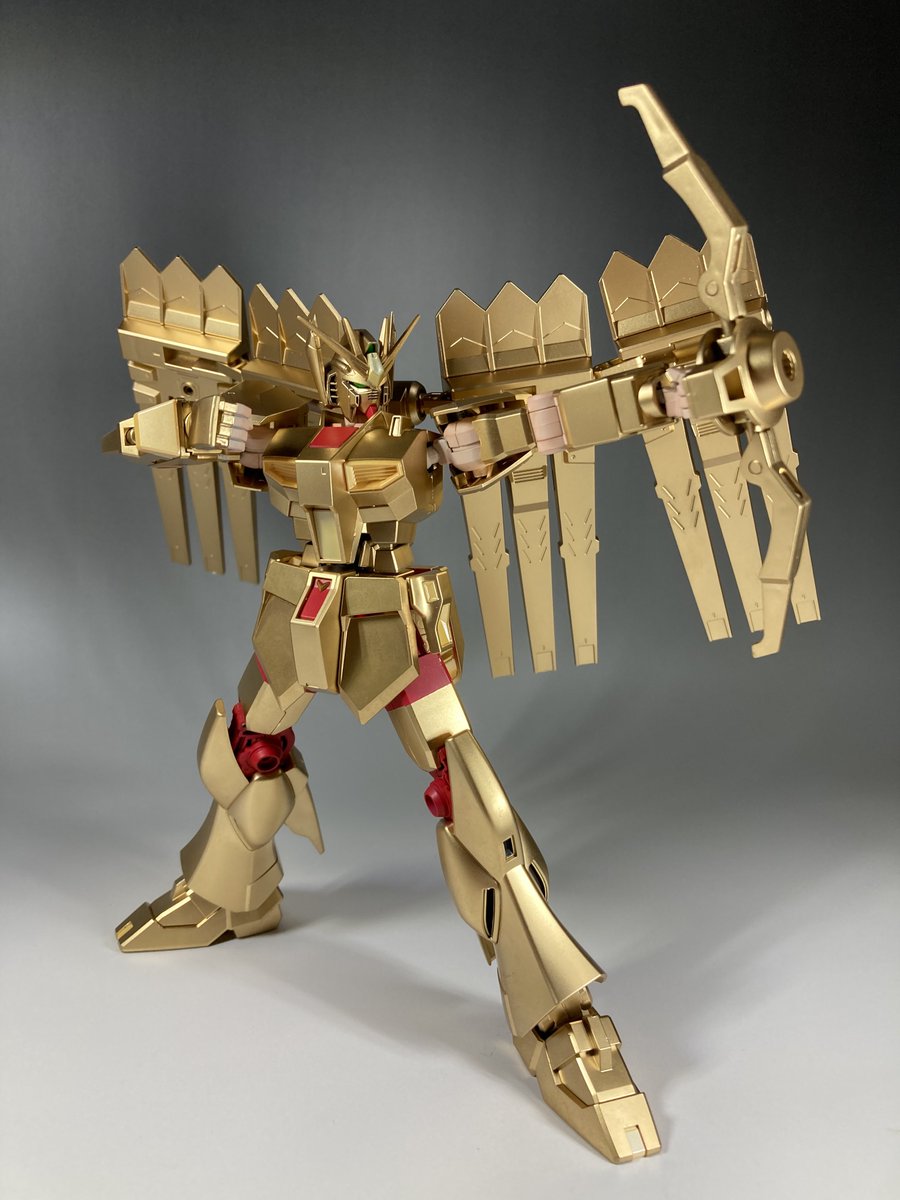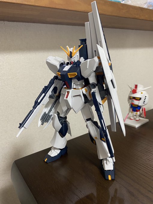EGνガンダム完成しました! HGUCから各種武装を流用しつつ全塗装 #ハイキューパーツ さんのメタルパーツを使ってのディテールアップを行い おなじみ #ガンプラ凄技テクニック を参考に光沢仕上げです 以下レスで画像続きます #俺達のEGガンダム後夜祭 #俺達のEGガンダム #俺のν #ガンプラ #gunpla