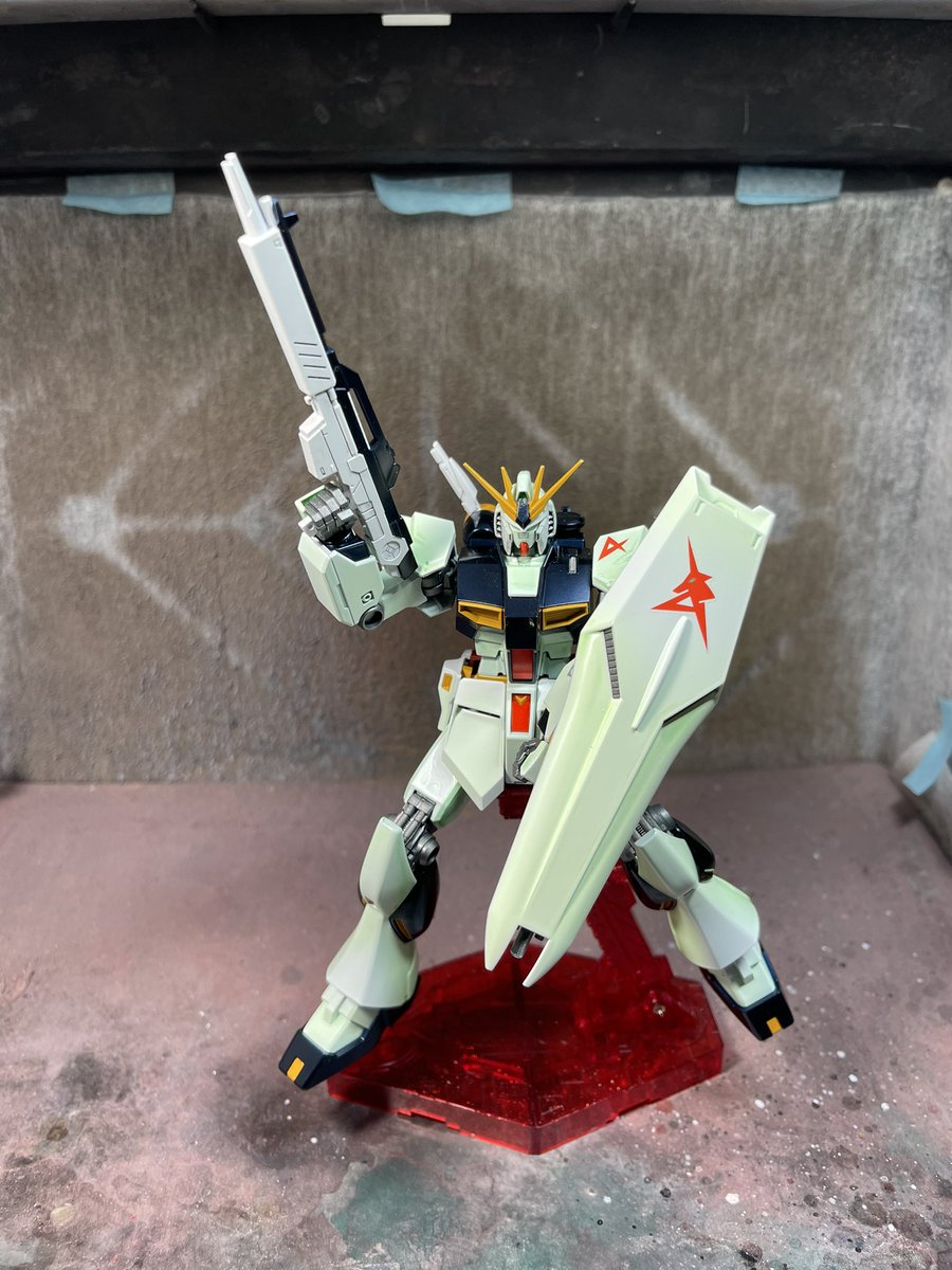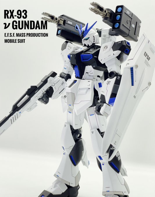 EG ニューガンダム 量産機仕様完成しました。カラーリングやデカールで通常のアムロ仕様からガラッと変えてみました。 ウェポン追加しディテールマシマシです✨ ギリギリ後夜祭に間に合いました😅追加写真あり #俺達のEGガンダム後夜祭 #俺のν #ガンプラの画像を貼るとRTされると聞いて
