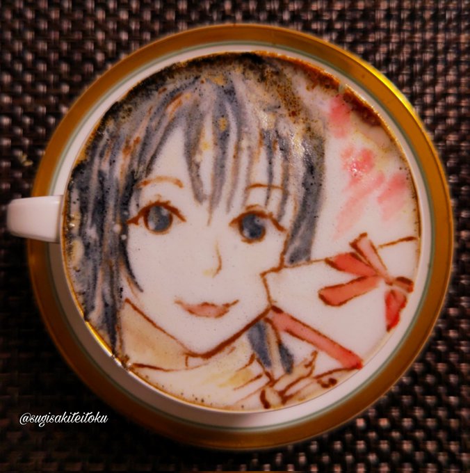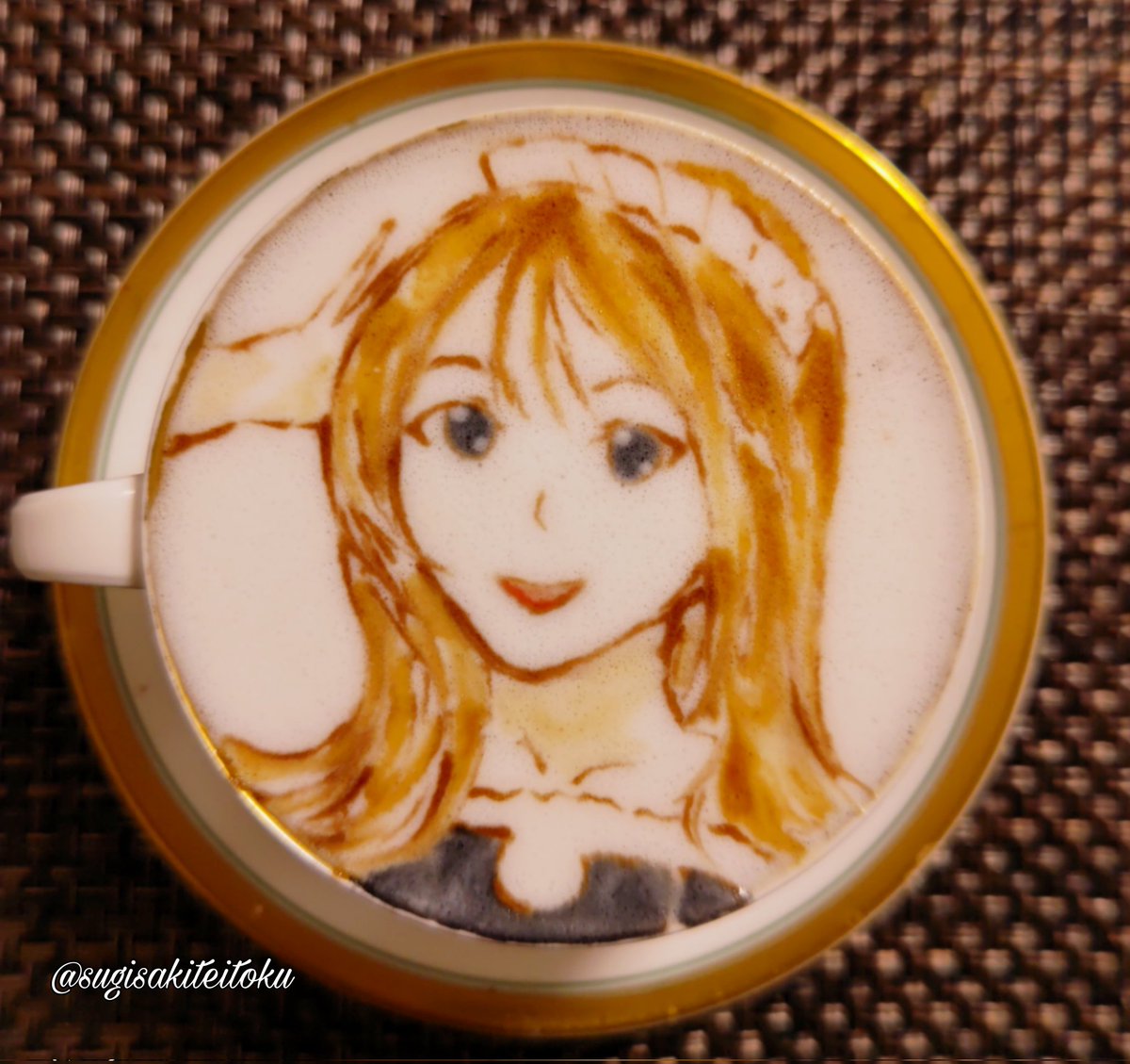 本日のラテアートは舞台『アリスinmuscleランド』からアリス役の倉田瑠夏さんで一杯 とても素敵な奈良公演ありがとうございました♪ 来週は大阪公演なので少しでも興味持って頂けたら是非足を運んで下さいね #倉田瑠夏 #アリスinmuscleランド #サムライロックオーケストラ #ラテアート #latteart