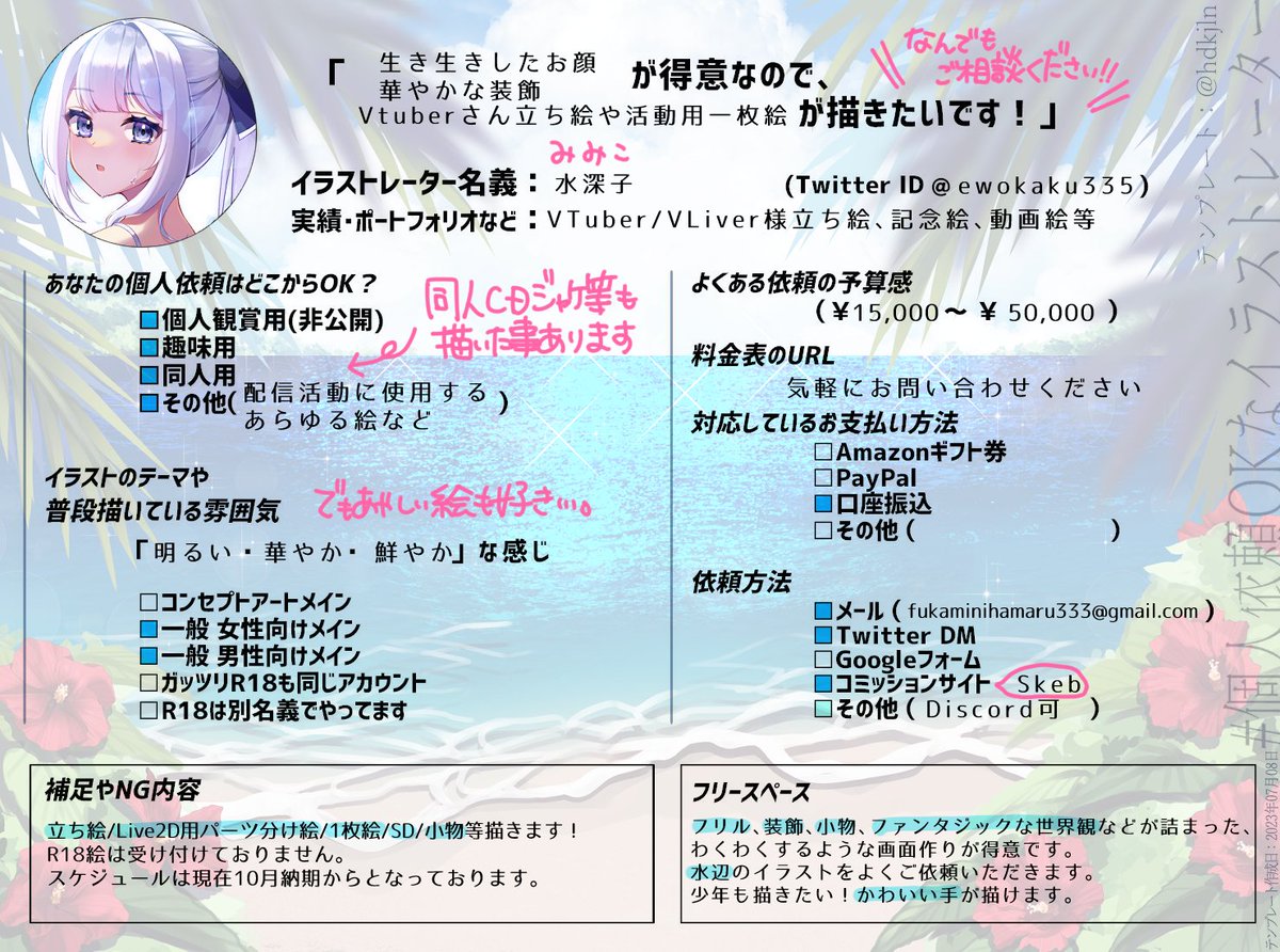 テンプレートお借りします! アカウントを移行したので再投稿させていただきます。 現在10月以降着手のお仕事募集中です! キャラクターデザイン、MVイラスト、グッズイラストなどお手伝いできることがあればお気軽にご相談ください! lit.link/MizunoIro3 #個人依頼OKなイラストレーター