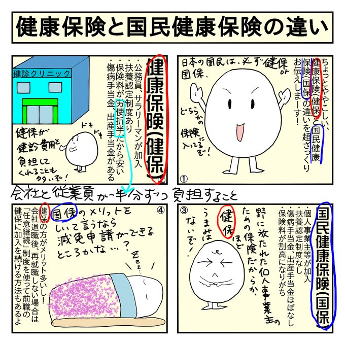 #国民健康保険 と #健康保険 の違いについて #マンガ にしました。駆け出しフリーランスのときは、この国保の高さにびっくりするんだよな #フリーランスと繋がりたい #Web漫画 #コミック #comic #四コマ漫画 #4コマ漫画 #漫画好きと繋がりたい #漫画が読めるハッシュタグ