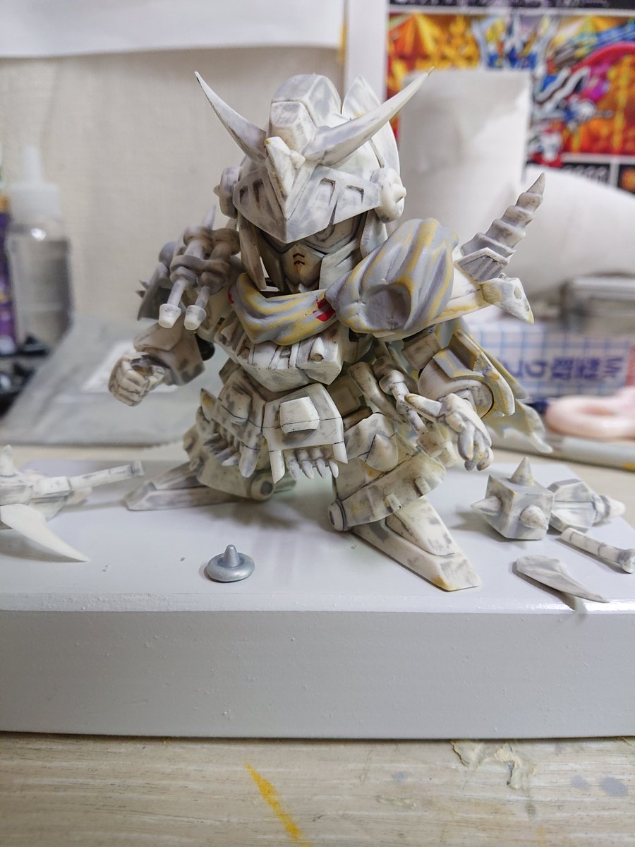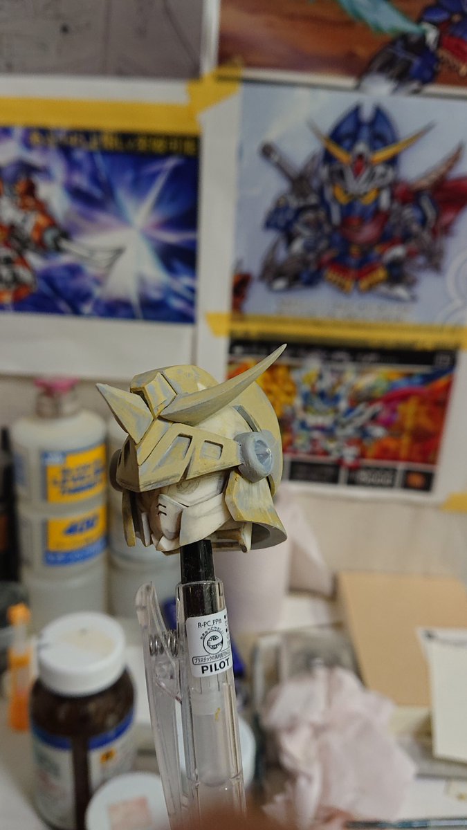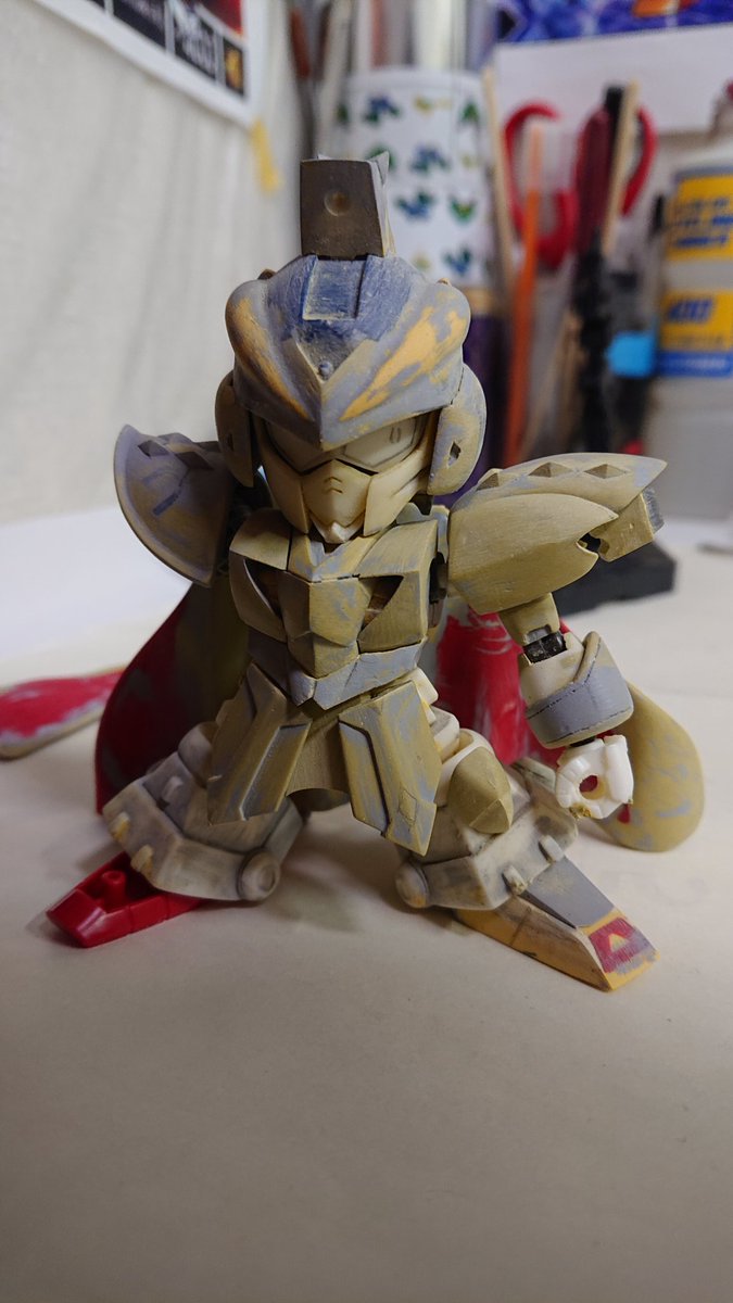塗装前後パート4 これも白いマルスから流用 元騎士ガンダム 軽装も再現 当たり前パテ造形 削りカスで 鼻痒くなる∠( ー`дー´)/シャキ━━━━ン!! わかる?|дー´)チラッ #これを見た人は塗装前と塗装後を貼れ #SDガンダム #SDガンダム外伝 #傭兵騎士マルスガンダム