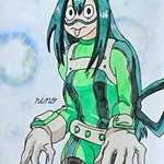 ヒーローって憧れるしカッコいいですよね👍️ 私がもし、この世界に行く事が出来るなら個性とヒーロー名何にしようかな……なんちゃって‼️(;´Д`)ハァハァ🤤アレシカナイヨネ!! #僕のヒーローアカデミア #僕のヒーローアカデミアイラスト #ヒロアカ #蛙吹梅雨 #模写 #水彩画 #絵描きさんと繋がりたい