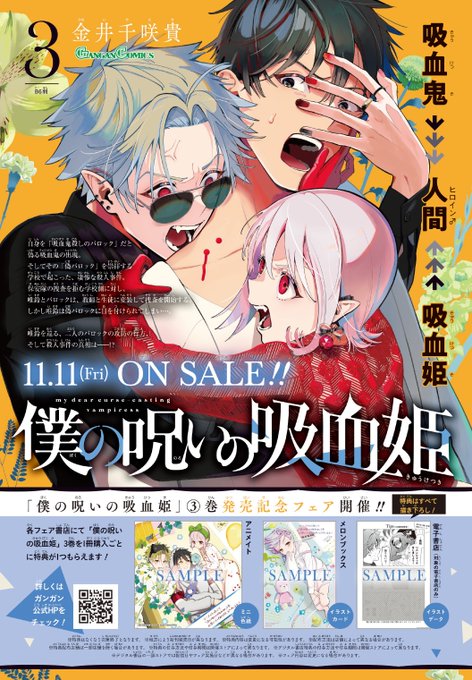 僕の呪いの吸血姫3巻11月11日㈮発売です! ↓↓店舗特典の詳細はコチラ!↓↓ magazine.jp.square-enix.com/top/event/deta… 【試し読み】 twitter.com/chisakitamago/… #僕の呪いの吸血姫