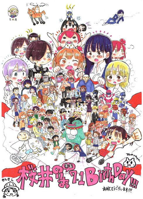 🌸桜井のりお先生@lovely_pig328お誕生日おめでとうございます!!🌸 今月から始まる大阪の記念展も大成功しますように…!(2021年の過去絵ですが お祝い絵です!🙇♂️) #みつどもえ #ロロっロ! #僕の心のヤバイやつ