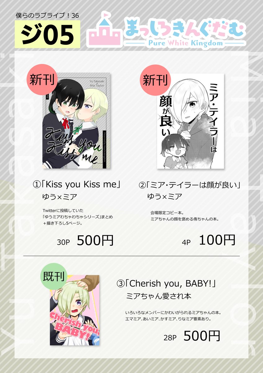 【僕ラブ36 通販のお知らせ🆕】 #僕ラブ36 で頒布した新刊をBOOTHにて通販開始しました🙌 ↓ mizoreccho.booth.pm ✨新しい頒布物✨ ❶WAKUWAKU かすみんBox(新刊) ❷僕ラブセット(新刊+既刊+チェキセット) ※僕ラブセットはかなり残部が少ないのでご希望の方はお早めにどうぞ🙇!