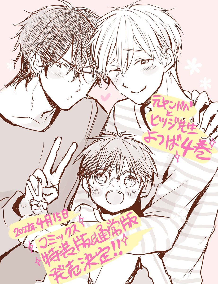 🍀4/15『#元ヤンパパとヒツジ先生 よつば4巻』のコミックス発売が決定致しました!!!今作品でシリーズ完結となります。 🎀フルカラー小冊子40p付特装版✨ (描き下ろし含む「元ヤンパパとひなたくん」を収録) 🎀通常版✨ コミックス本編にも日向君が少し成長したその後の3人のお話を収録✨✨