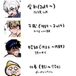 #今月描いた絵を晒そう その①意外と描いてた! 今月ははじめてうちよそ的なものをやって楽しかったなー!漫画より絵を多く描いたのは珍しいかも 久々のタグはふぁぼりつ片思い2日くらいでやってみます(`・ω・´) #創作クラスタと繋がりたい #絵描きさんと繫がりたい #元号擬人化 #改元浪漫譚