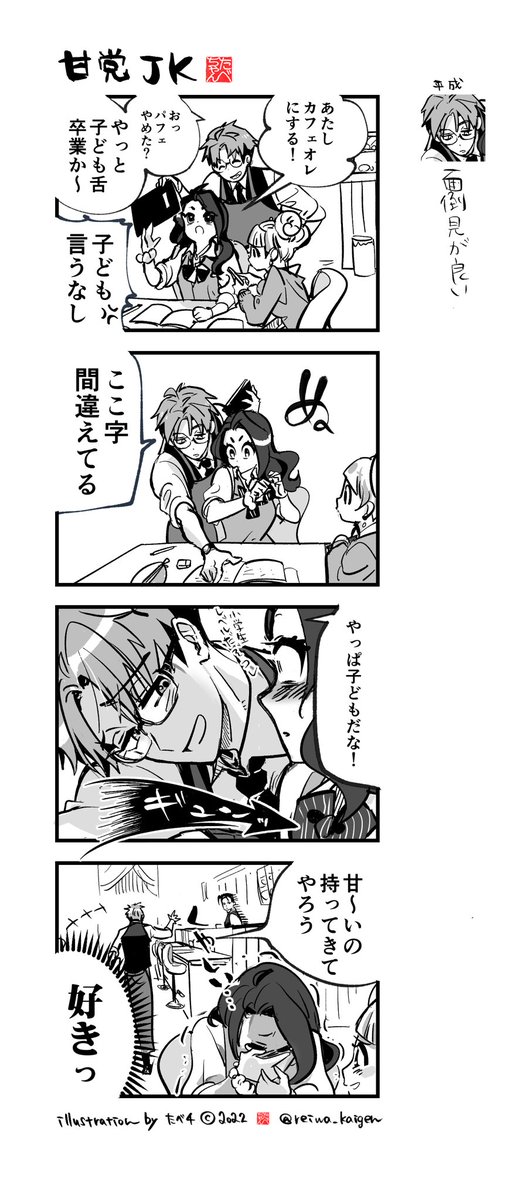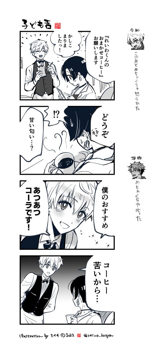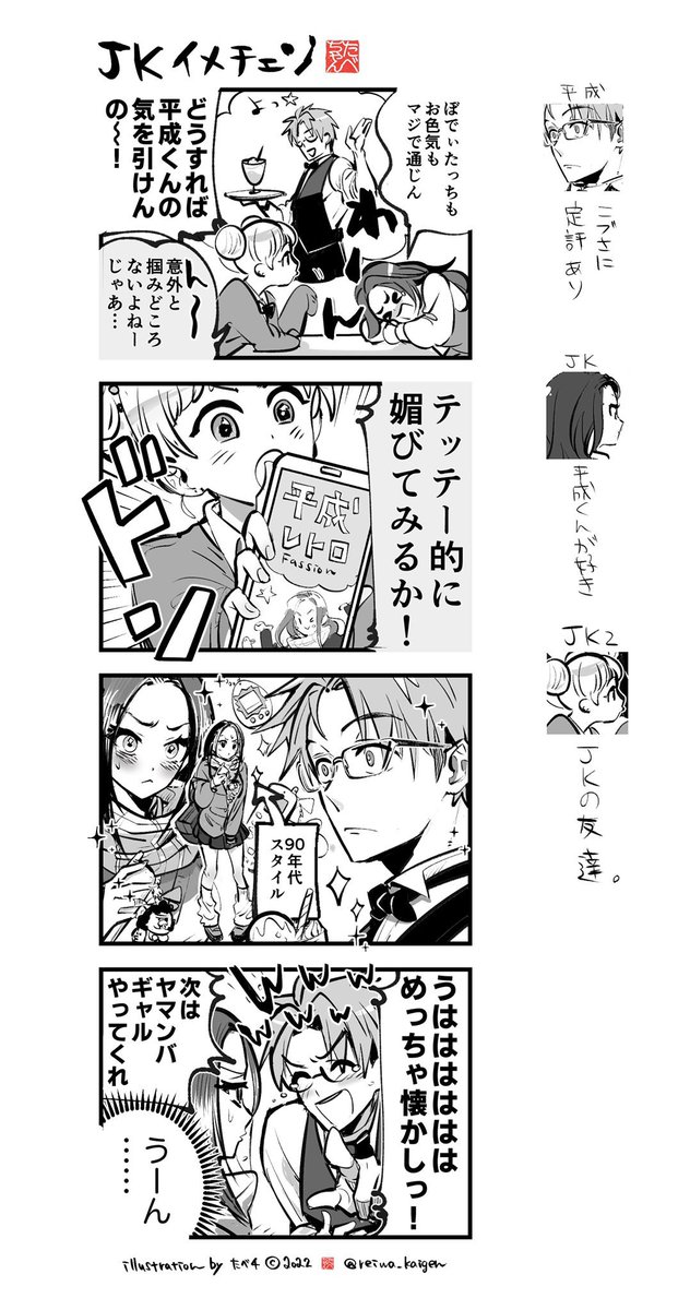 0630 #今月描いた絵を晒そう 漫画編① #元号男子カフェ、#妄想腐女子たべこ美、#元ヤンOL令和を飼う (※ファンボックス漫画の一部) 創作男女バンザーイ! 繋がりタグはツリー最初の記事に反応いただけたら巡回いたしますね☺️ご支援くださった方々ありがとうございます…! #4コマ #創作漫画