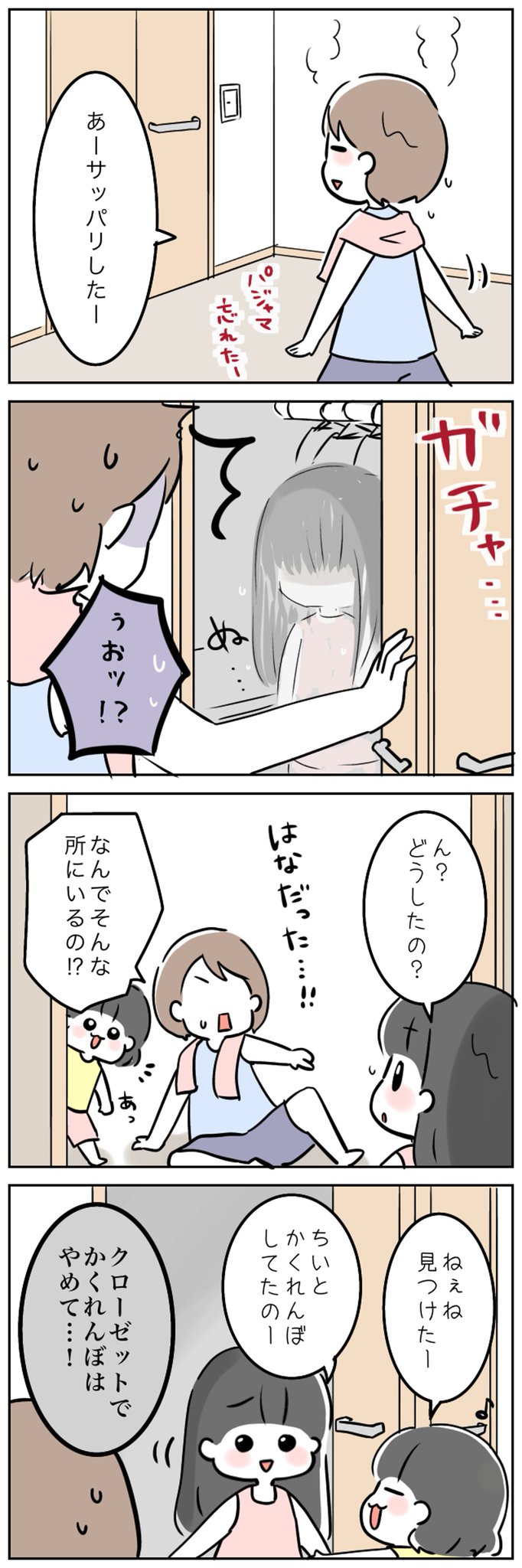 【育児漫画】恐怖のかくれんぼ お風呂上がりにクローゼットを開けたら…! genki-mama.com/articles/978BE #元気ママ応援プロジェクト #育児漫画 #漫画が読めるハッシュタグ