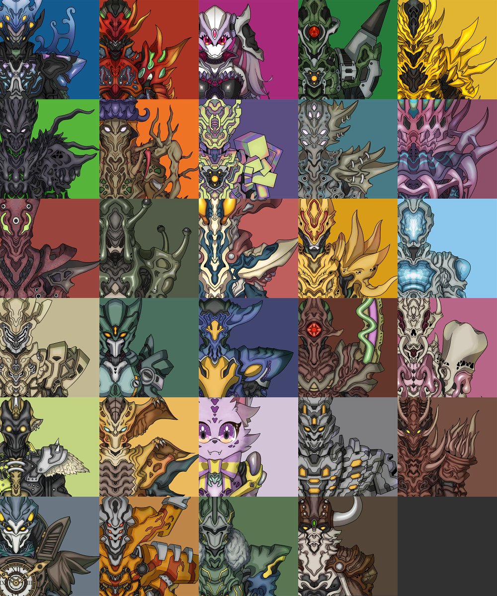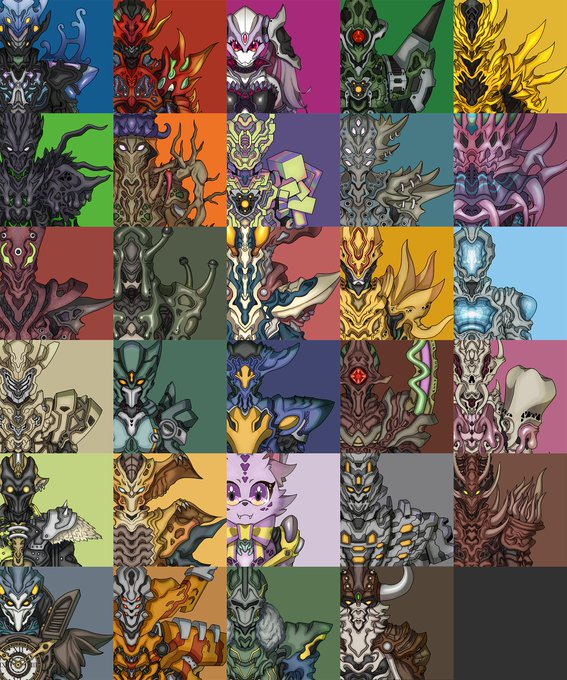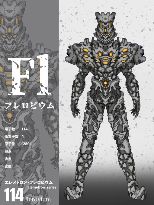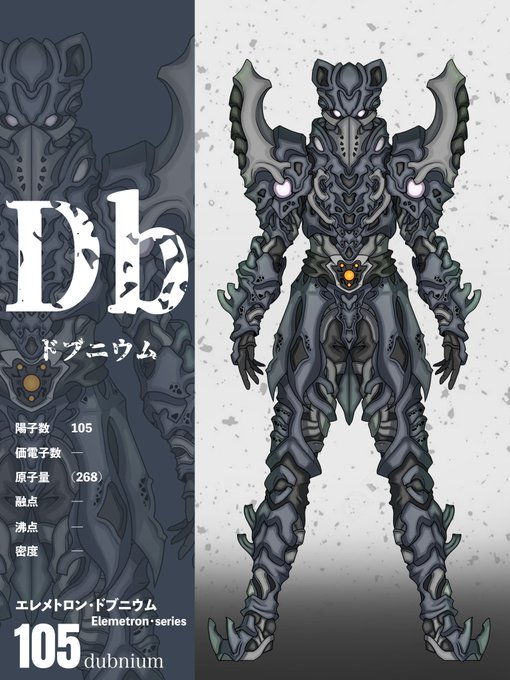 #元素で怪人描いてみた #エレメトロン 今年一年、約三ヶ月と少しで描いたエレメトロンは29体! 今発見されている全元素の4分の1を達成した形となります!! 引き続き完結プラスαに向けて頑張りますので何卒よろしくお願いします!! #オリジナル怪人