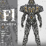 #元素で怪人描いてみた エレメトロン・フレロビウム 名前の由来となった人物の産まれた市旗に描かれた砦をモチーフに描いています。 またもやサマリウム素体ではありますが、印象をうまく変化できるよう今回は上半身のマッシブさに重点を置いて制作いたしました。 #オリジナル怪人