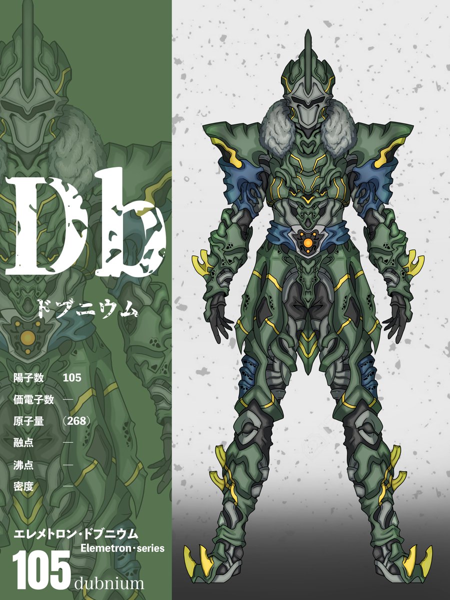 #元素で怪人描いてみた エレメトロン・ドブニウム(改訂版) 前回はクマ怪人だったのですが、なんか違うなが自分の中に出たために騎士という方向性に変えた上でリデザインしました カラーも名の由来の都市の旗から取ることで変更をしています #オリジナル怪人