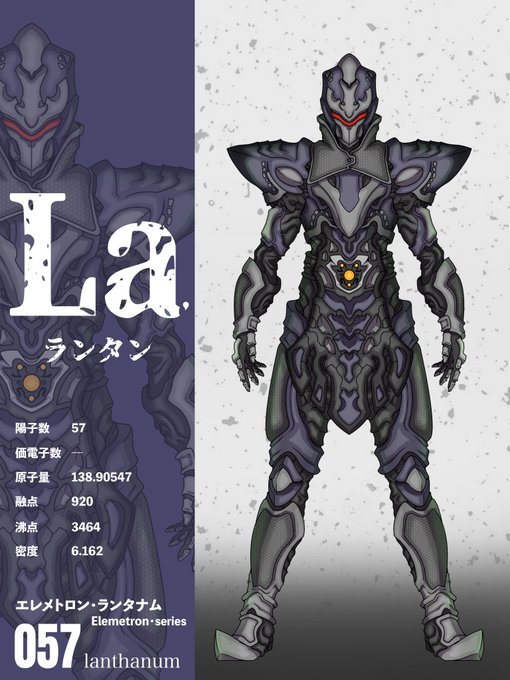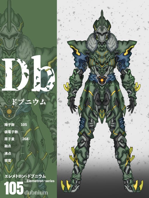 #オリジナル怪人 エレメトロン・ニホニウム(再リメイク) 真打登場!! 5月最後はこの子です!! 前回のがあまりに鎧すぎて納得いかなかったので、怪人らしくさいデザインしました 前よりも自信を持って提供できます() #元素で怪人描いてみた