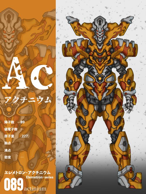 #オリジナル怪人 エレメトロン・メンデレビウム エレメトロンにあったオレンジのパーツを大増量、背面は見せていないですが背面を合わせて118個の球がある計算でデザインしています。 また、肩は元素周期表の形状をデフォルメしているものをアーマーにしています。 #元素で怪人描いてみた