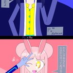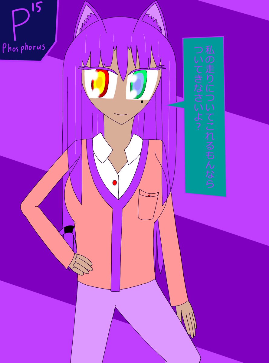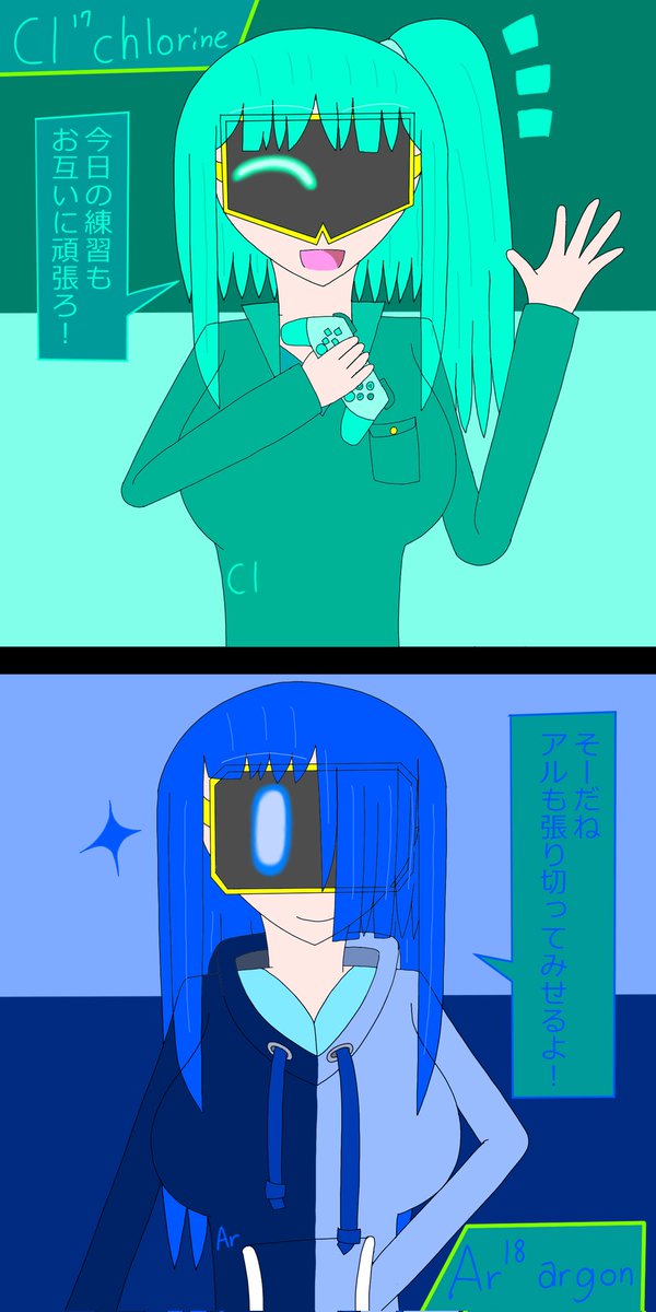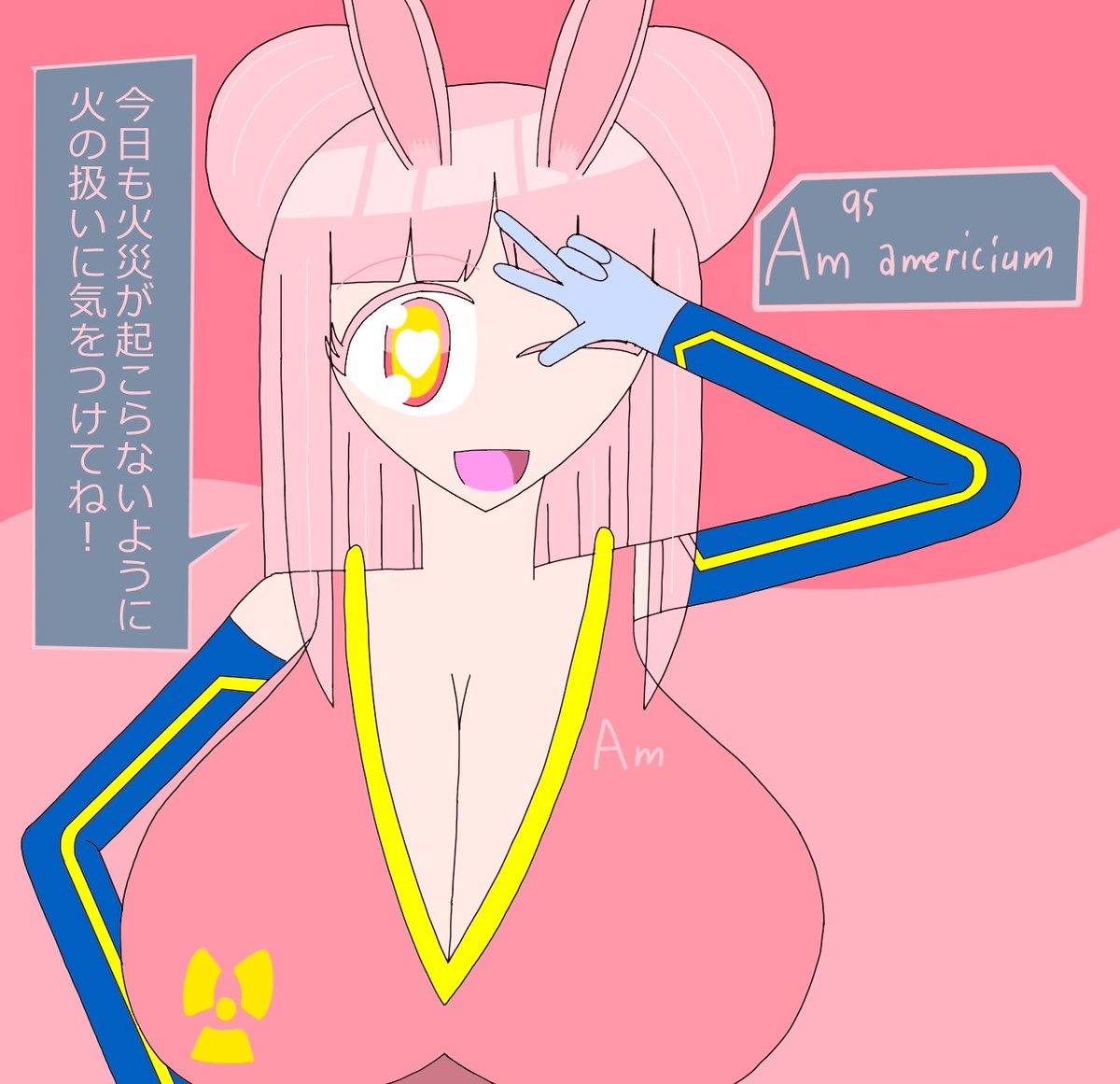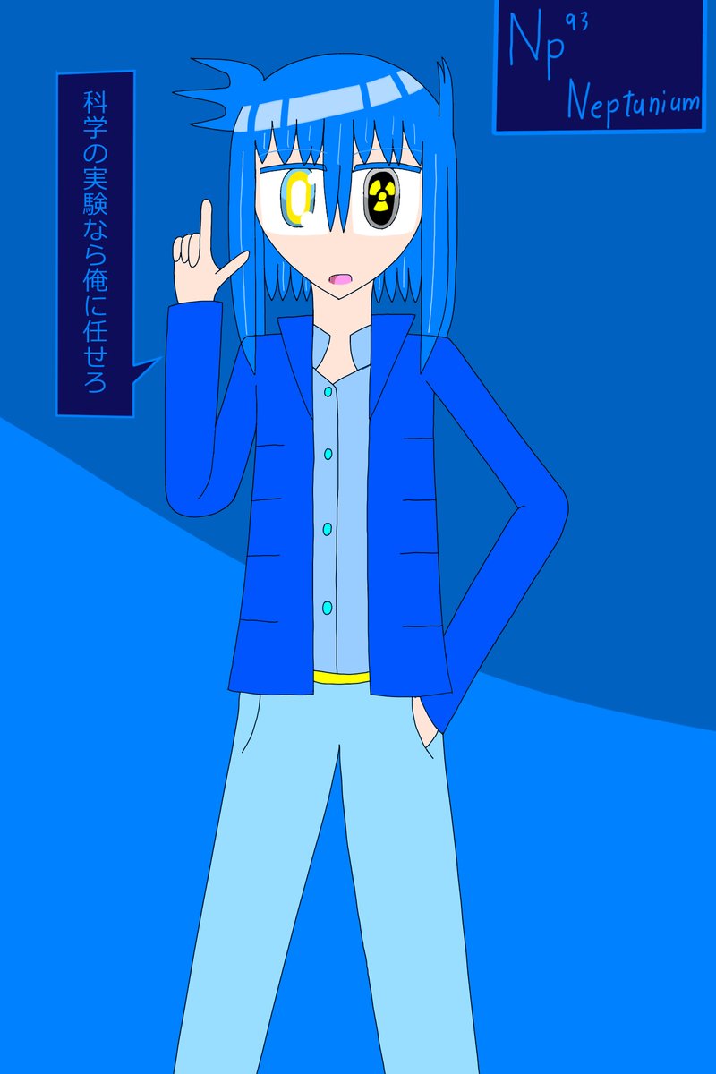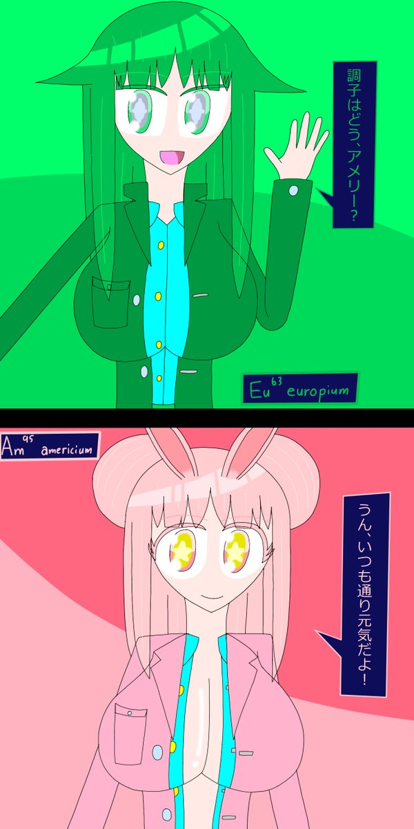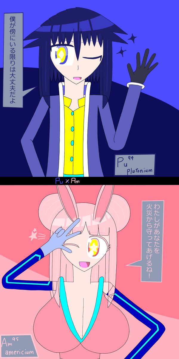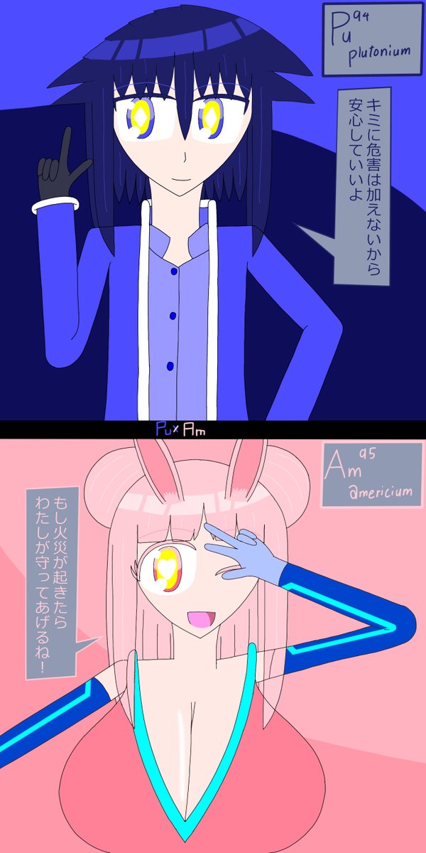 アメリシウムの前髪は2通り存在する なんで前髪が2通りあるのかと言うとユウロピウムと会う時はオフなのに対し、アイドル活動をする時などは前髪を整えることが多いかららしい #イラスト #元素擬人化 #アクチノイド・フォース・チルドレンズ