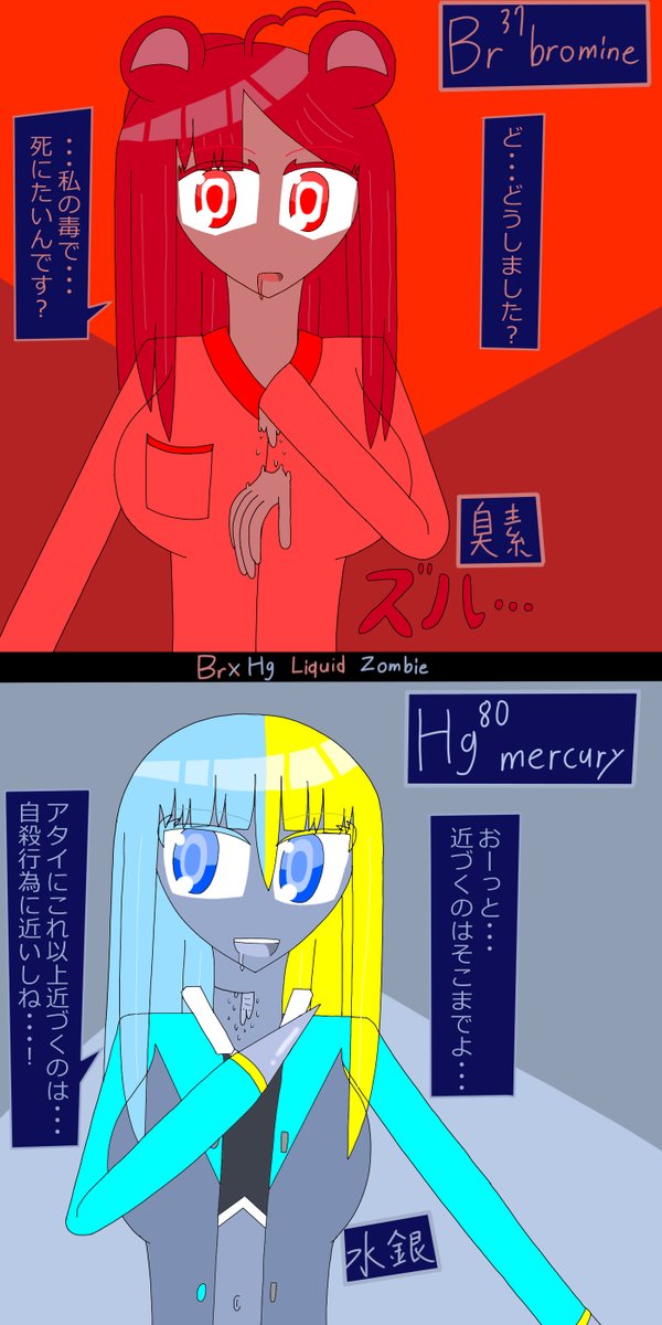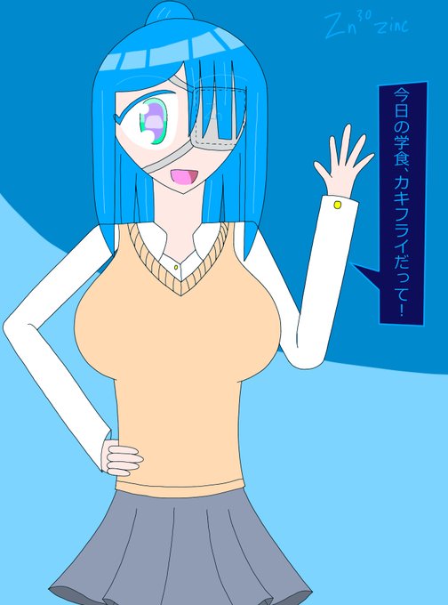 【元素紹介】亜鉛 造船の際、鉄を酸化から守る身代わり役 牡蠣にも含まれる鉄の親友 身体能力は人並みだけど足腰が強靭すぎる女子高生 部活は「技術部」 カキフライに目がない #イラスト #元素擬人化 #ElemensLife(Chaos School)