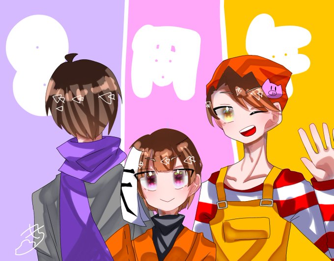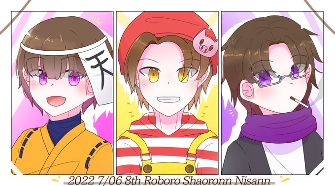 1日遅れになりましたが、 シャオさんロボロさん兄さん8周年おめでとうございます!! 初登場時と今では印象が打って変わって常識人枠から大きく外れ、すっかり染まってらっしゃるのでこれからももっと喧嘩してください! #シャオロン8周年記念祭 #ロボロ8周年記念祭 #兄さん8周年記念祭