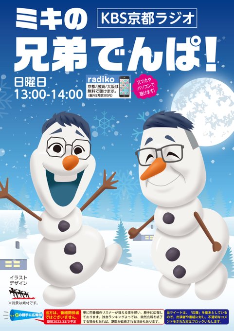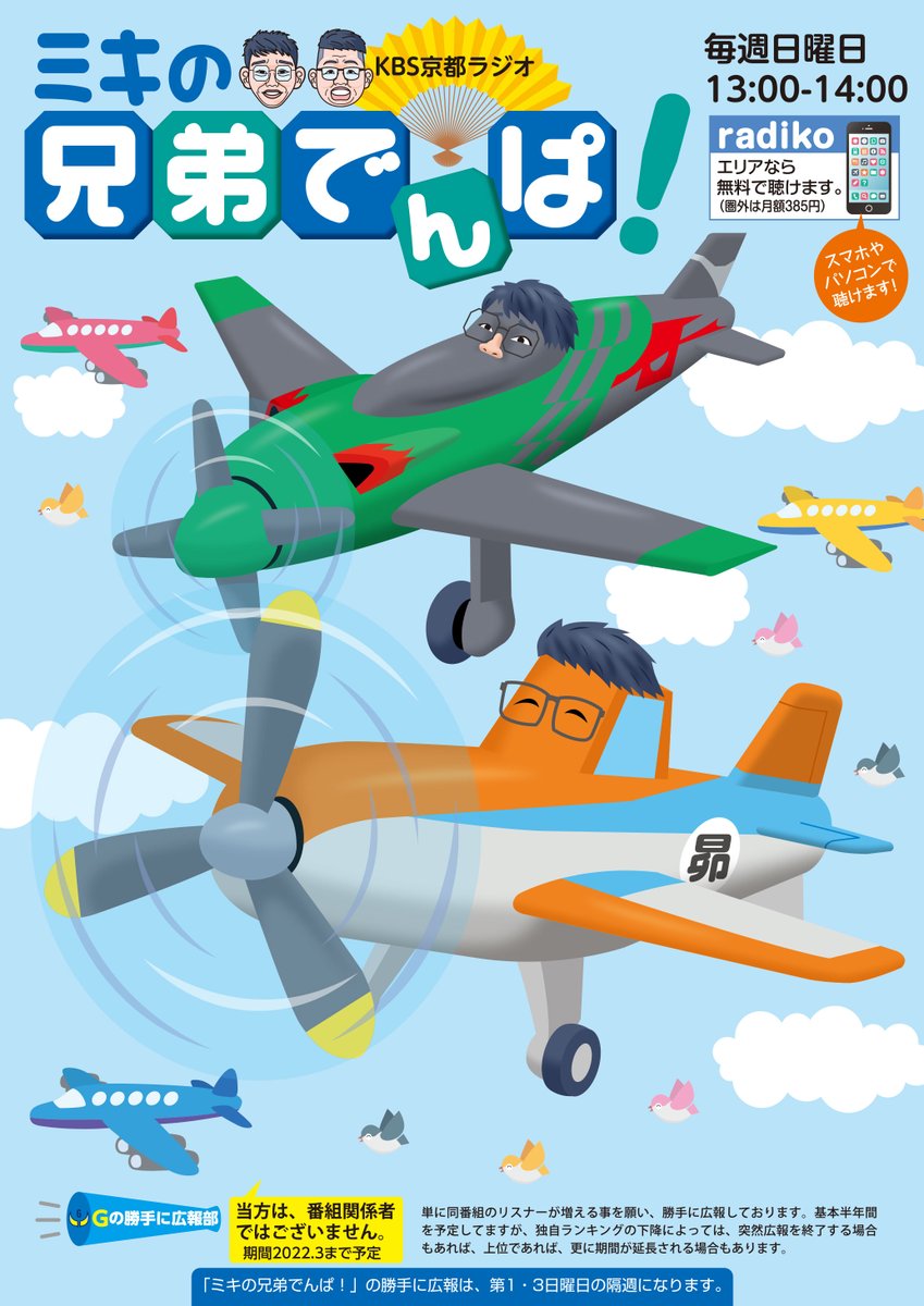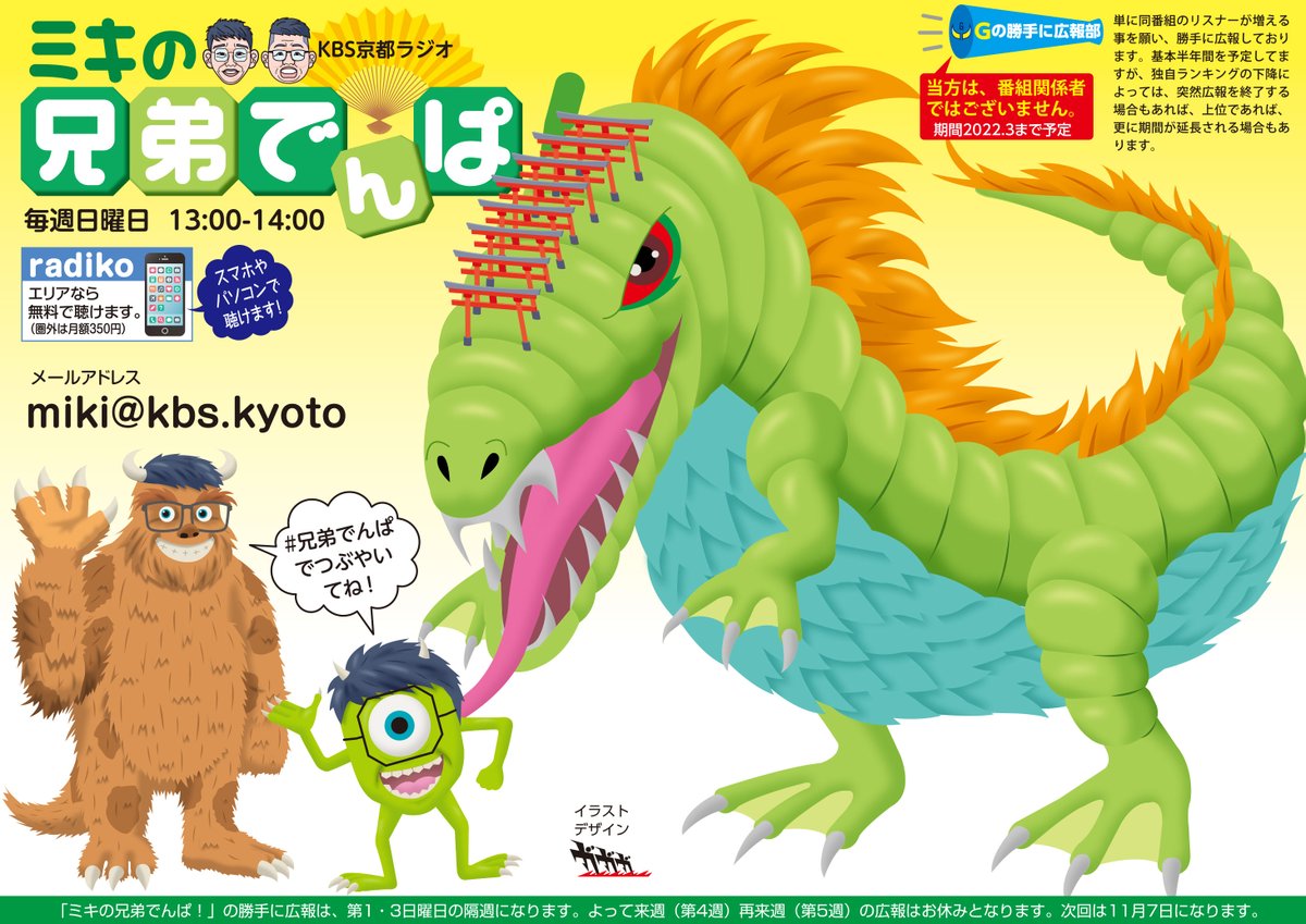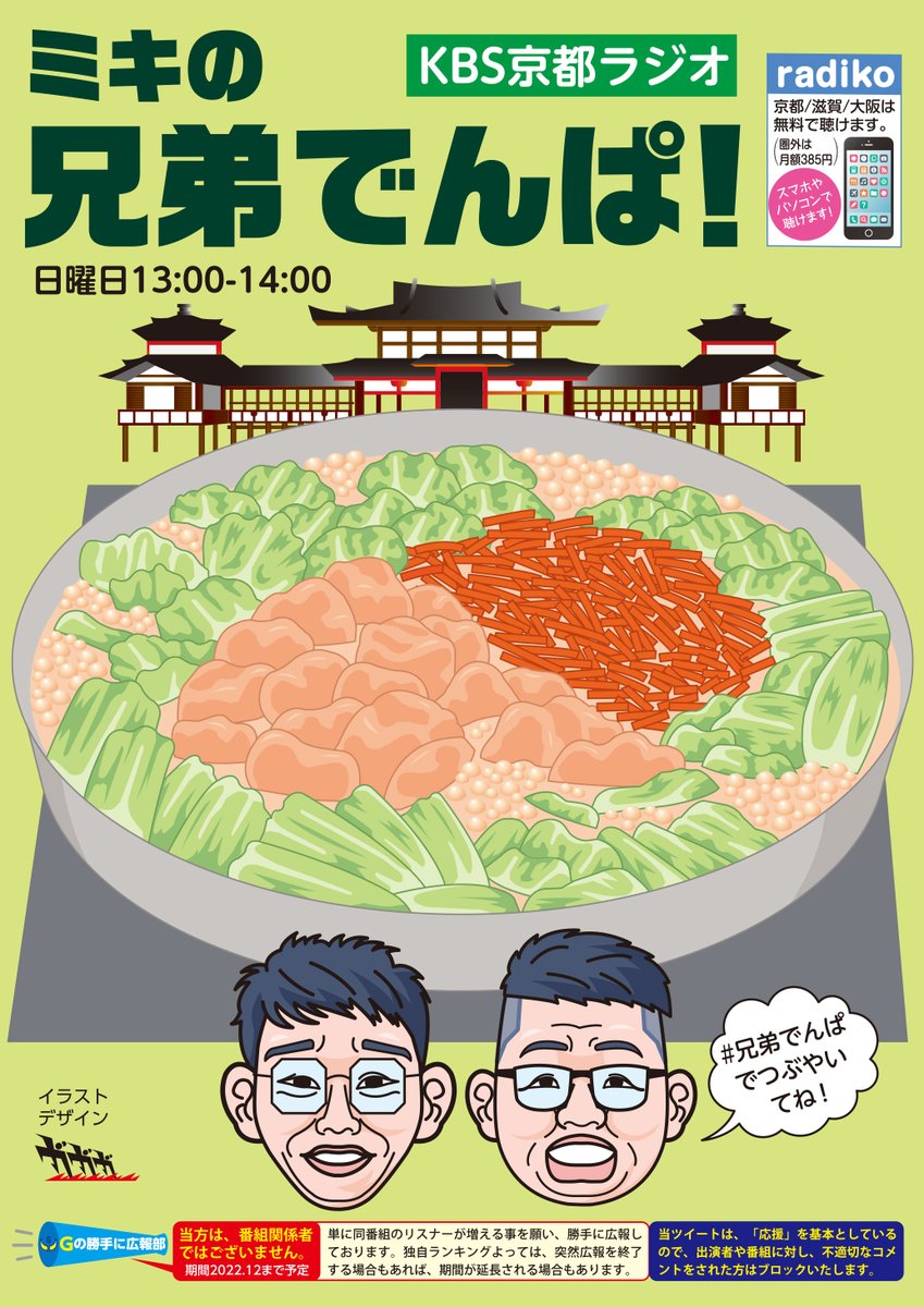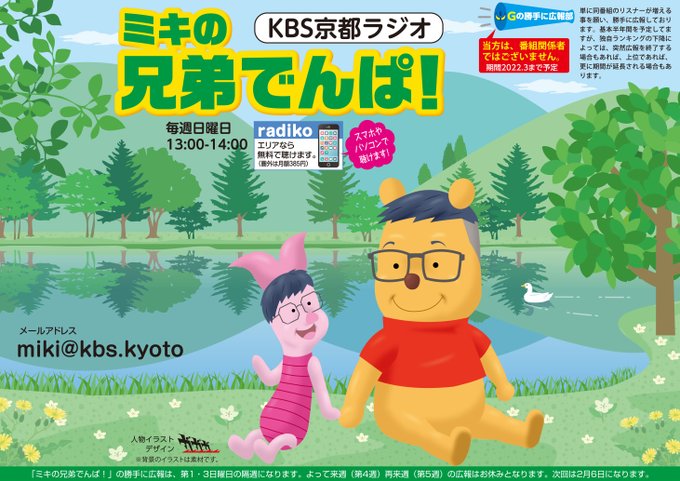 KBS京都、ミキの #兄弟でんぱ を勝手に広報しております😀。昼13時放送😊。(風景イラストは素材を利用してデザイン仕上げしてます😅。) 次回広報は2月になります。2週空きます。すいません🙏。 #絵描きさんと繋がりたい