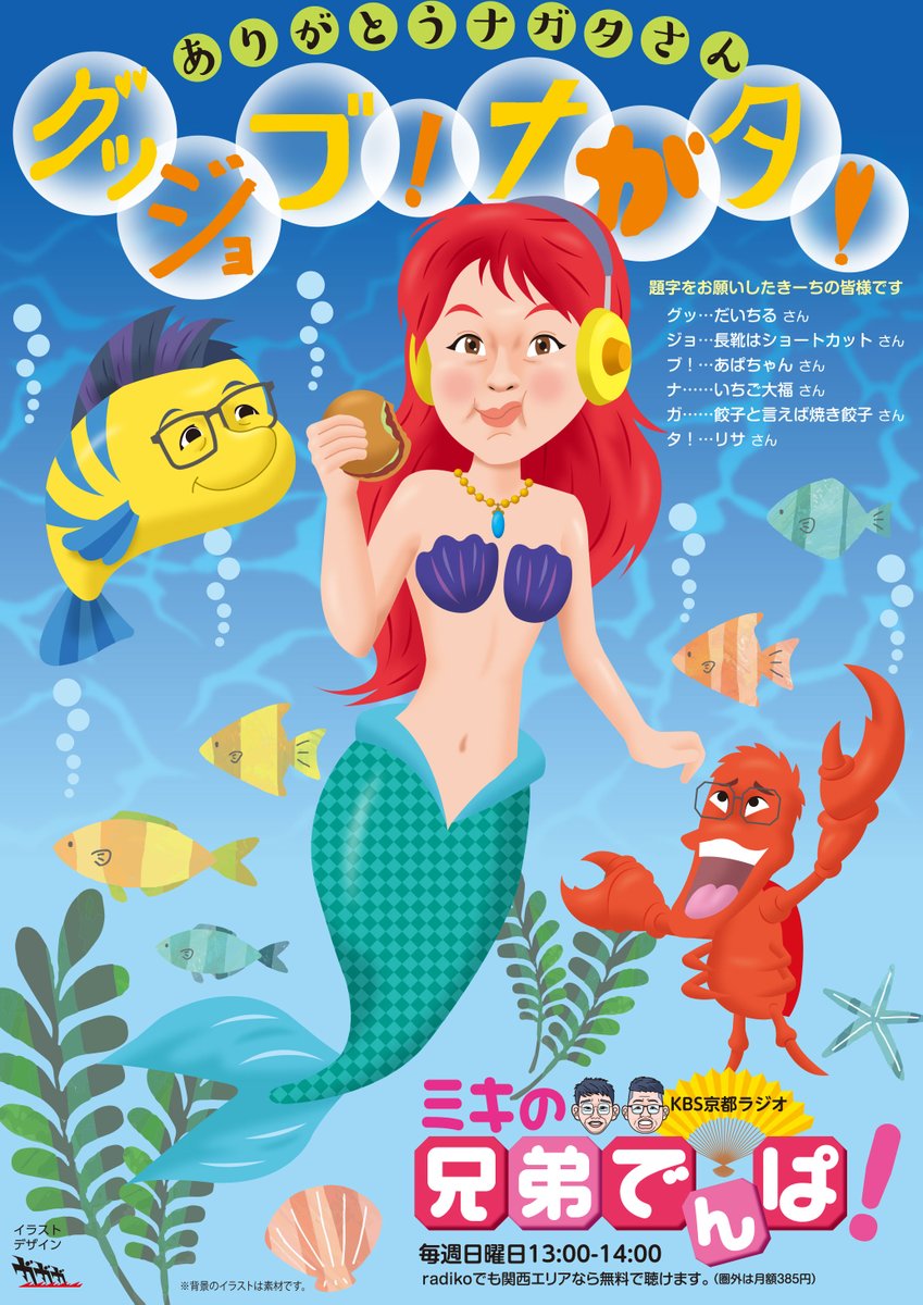 ナガタさん担当最終回に合わせて、きーちの方に題字のご協力をいただき、完成させた絵です😀。ご協力感謝です!リツイートなどくださると助かります🙏。 KBS京都、ミキの #兄弟でんぱ を勝手に広報中😀。本日(日曜)お昼13時。ナガタさん、ありがとぉー🤗😆! #絵描きさんと繋がりたい