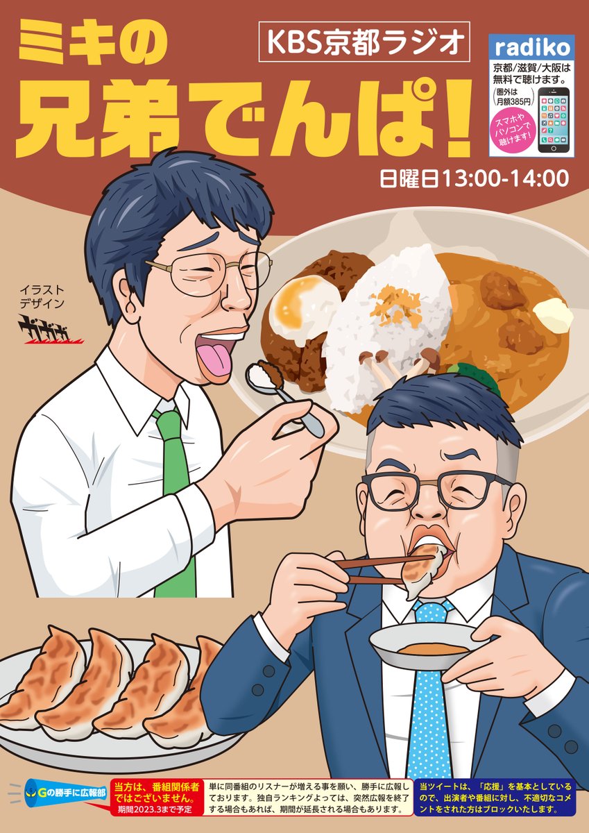 こちらは、あいにくの雨模様☔️ですが…KBS京都、ミキの #兄弟でんぱ を勝手に広報しております😀。放送は本日(日曜)昼13時から。 尚来週第4週は、広報お休みです😌。 #絵描きさんと繋がりたい