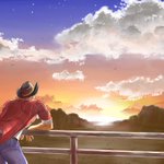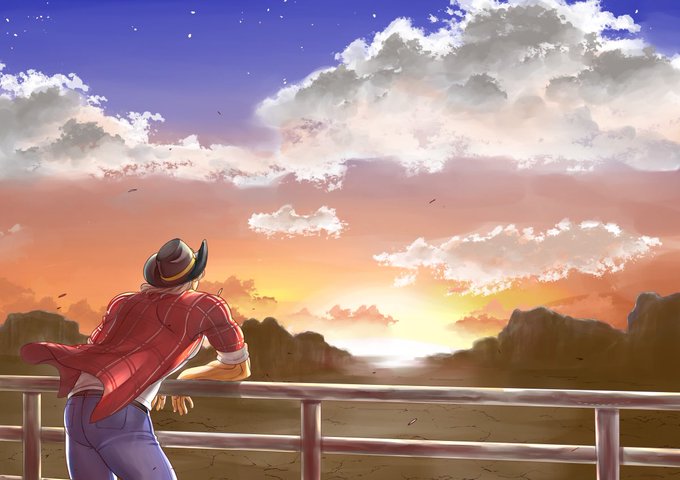 #テリーマン生誕祭 テリーマン誕生日おめでとうございます❗️🎉🎂✨✨✨ テリーはリングの上以外の日常が一番想像しやすいかも知れませんね😄 時間があればもっと違う感じの夕暮れ空にしたかったのですが、結局叶わずでした😭 #キン肉マン #キン肉マンアニメ化決定 #先生ありがとうございます
