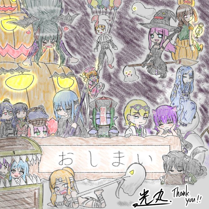 #イラスト #絵描きさんと繋がりたい #秋の創作クラスタフォロー祭り #ハロウィン #光丸のハロウィン仮装大会 最後は皆大集合! 今回の企画はどうでしたでしょうか? 気に入った仮装キャラはいたでしょうか? 楽しんでいただけたのなら幸いです! 本当にありがとうございました! では閉幕!