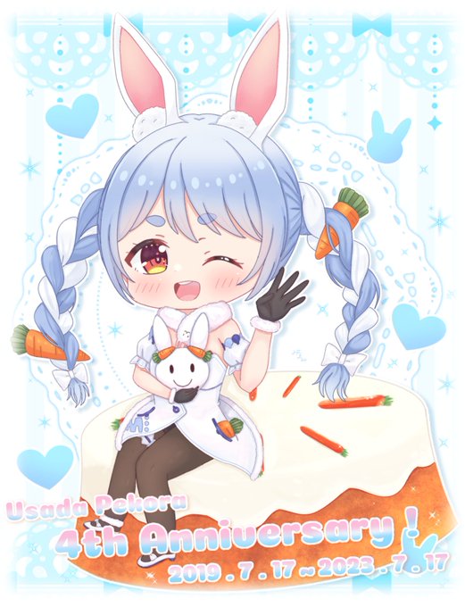 ぺこちゃん4周年おめでとう🎉🐰🥕 いつも配信楽しませてくれてありがとう! 24時間配信とこれからの活動も応援しています☺大好き✨ #ぺこらーと #兎田ぺこら4周年 #ぺこーら24応援イラスト